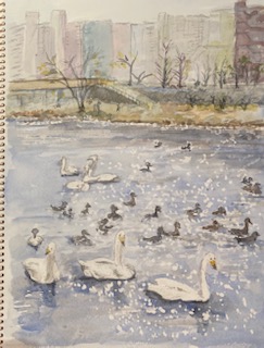 今日の墨画教室では、頂いたお花を愛でながら 墨画に。。。
