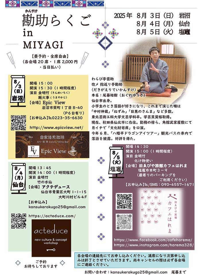塩釜会場・仙台会場ともに ご予約は熊久商店にて