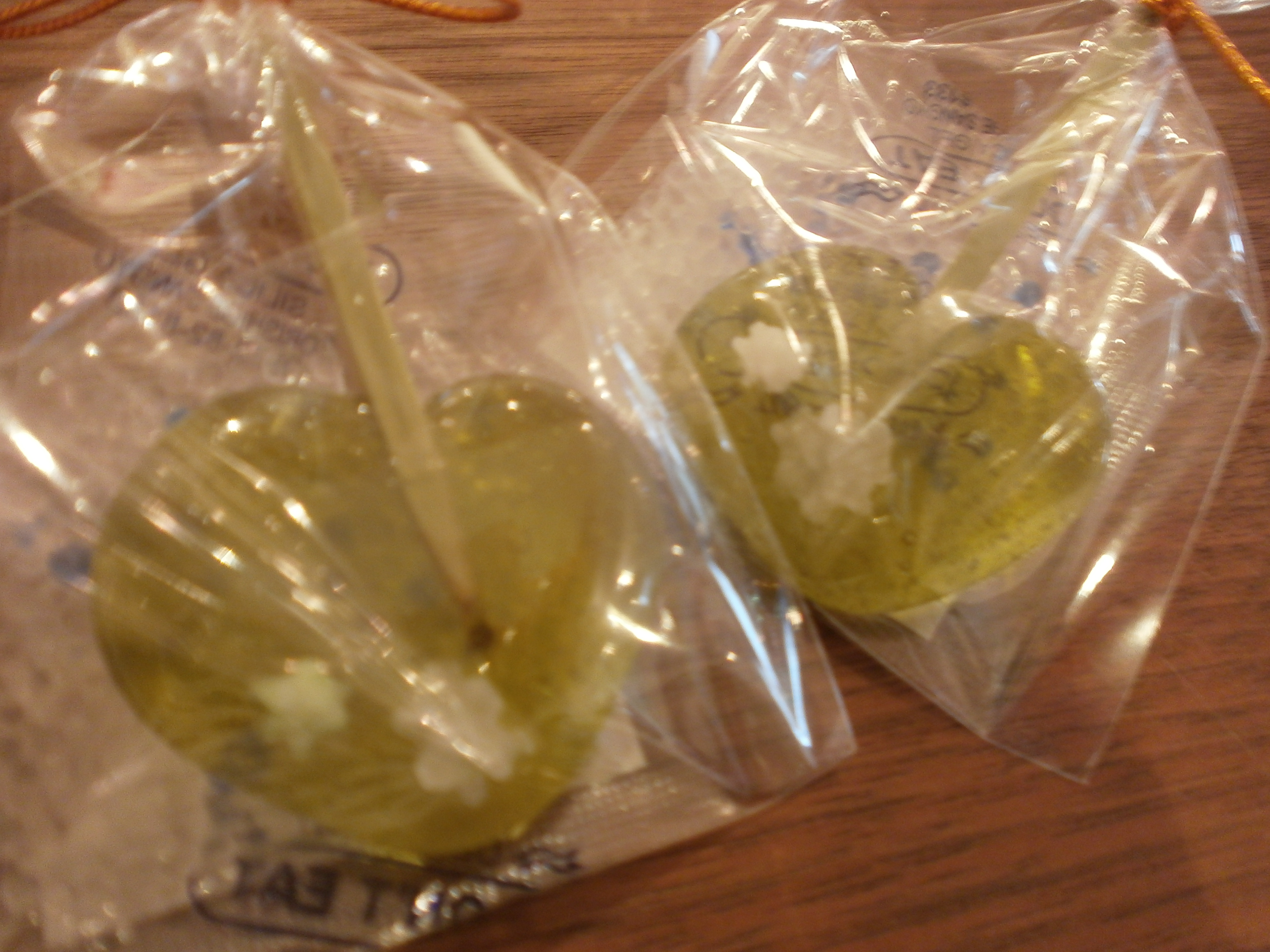 小倉の白玉・・・野菜ジュースでほんのり優しい色がついた白玉です