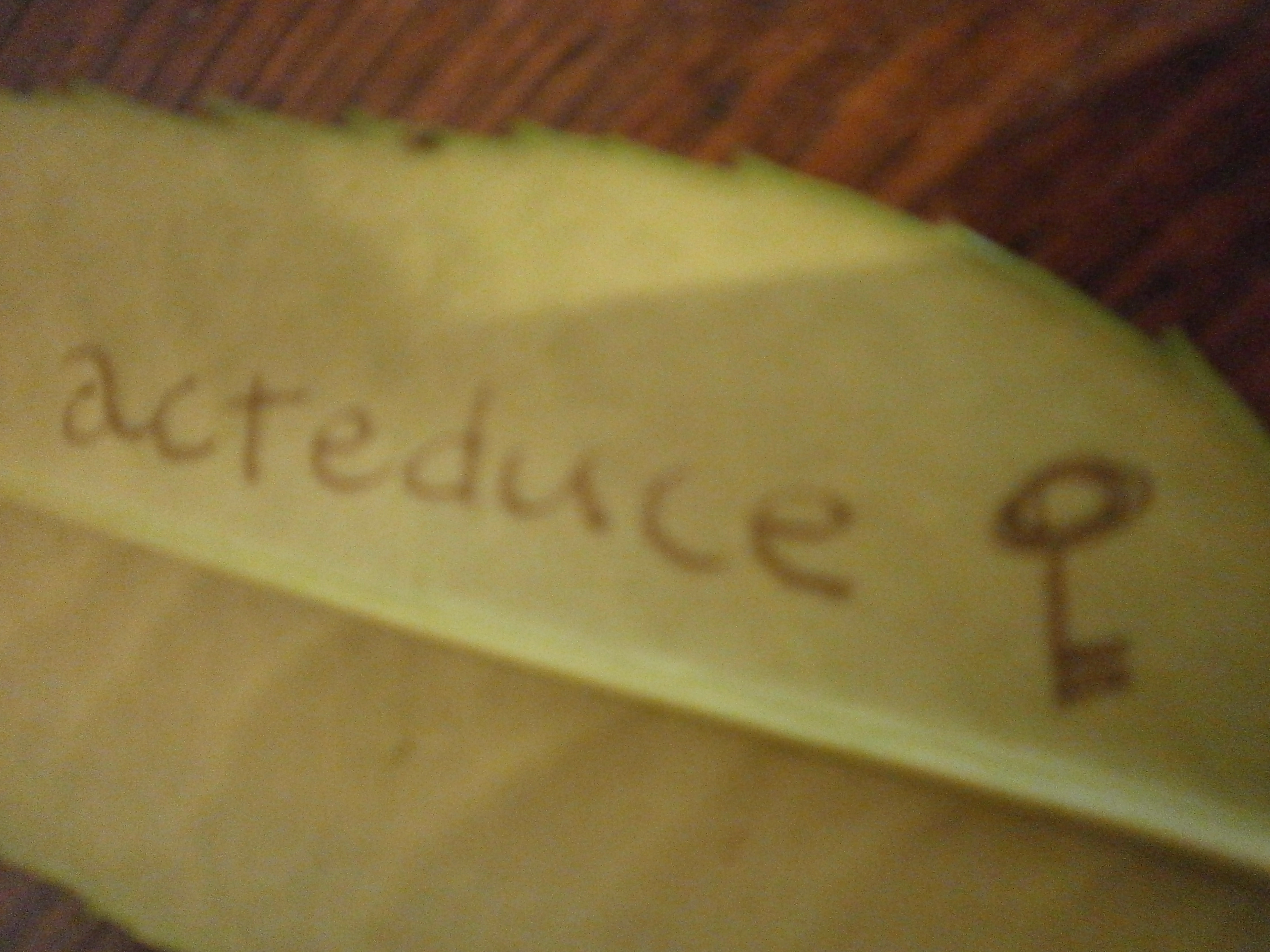 葉の裏を 引っかくと くっきりと こんな風に文字が書けるのです。