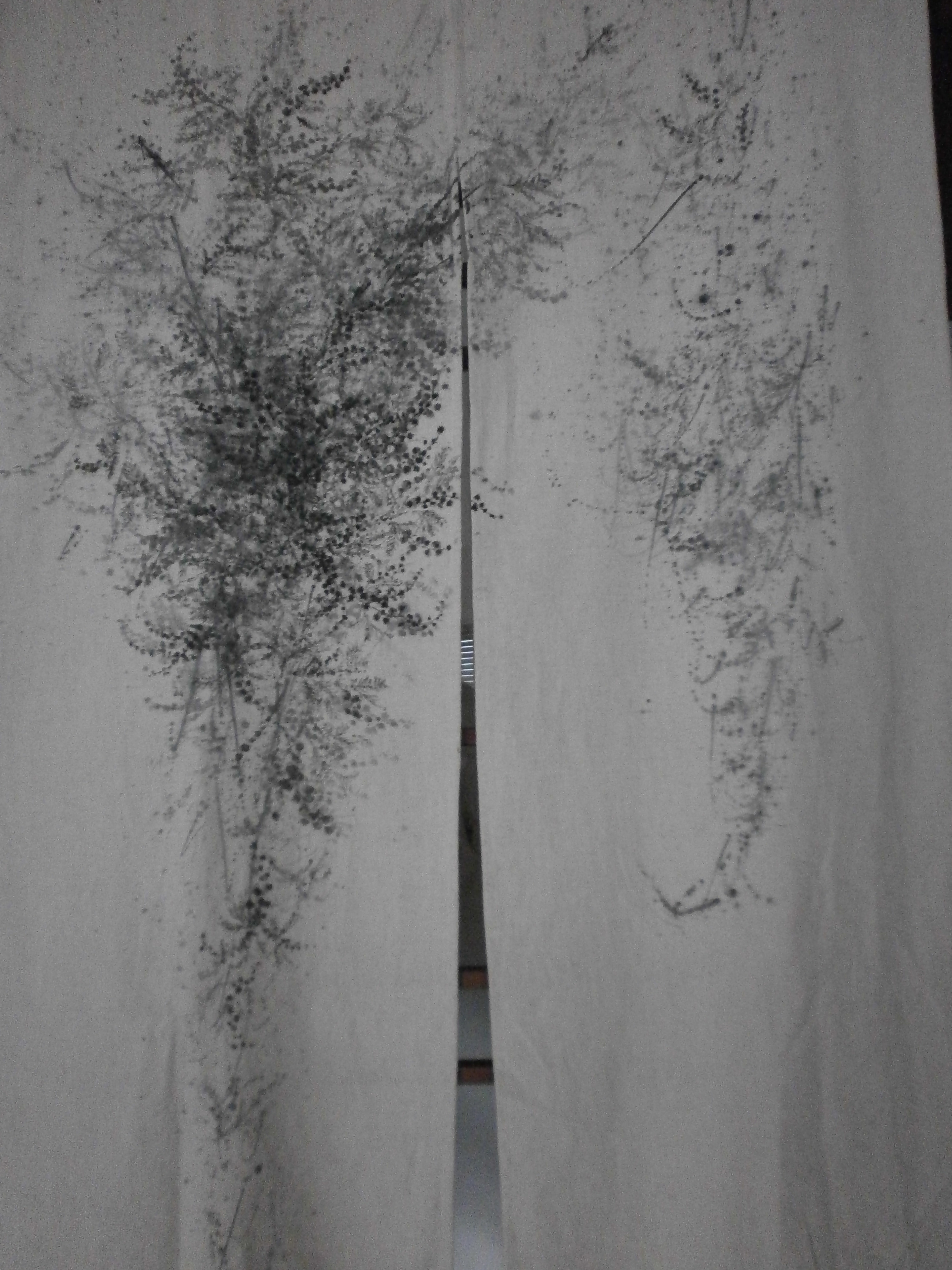 こちらは 昨日完成した「ミモザ」の暖簾です。