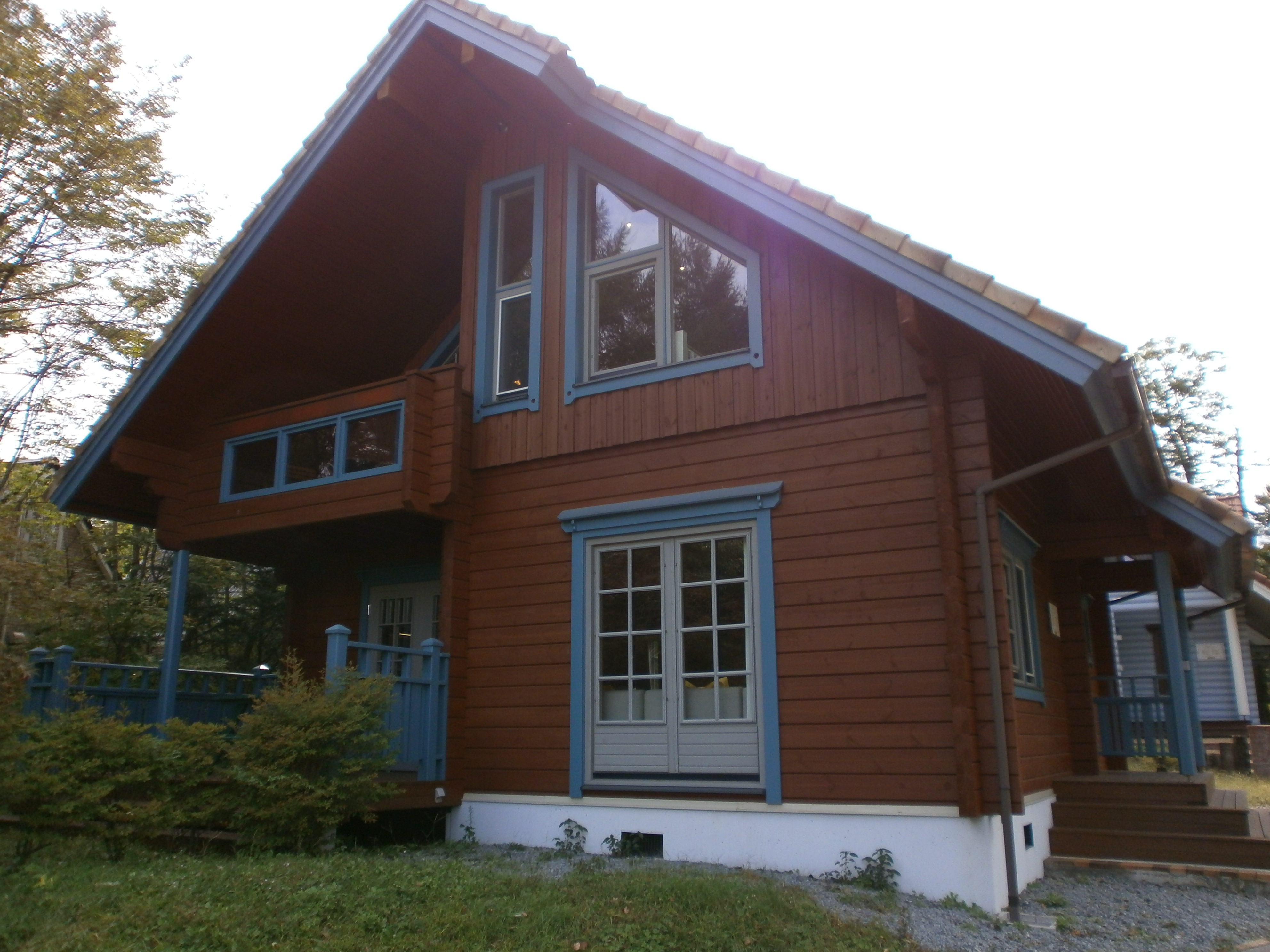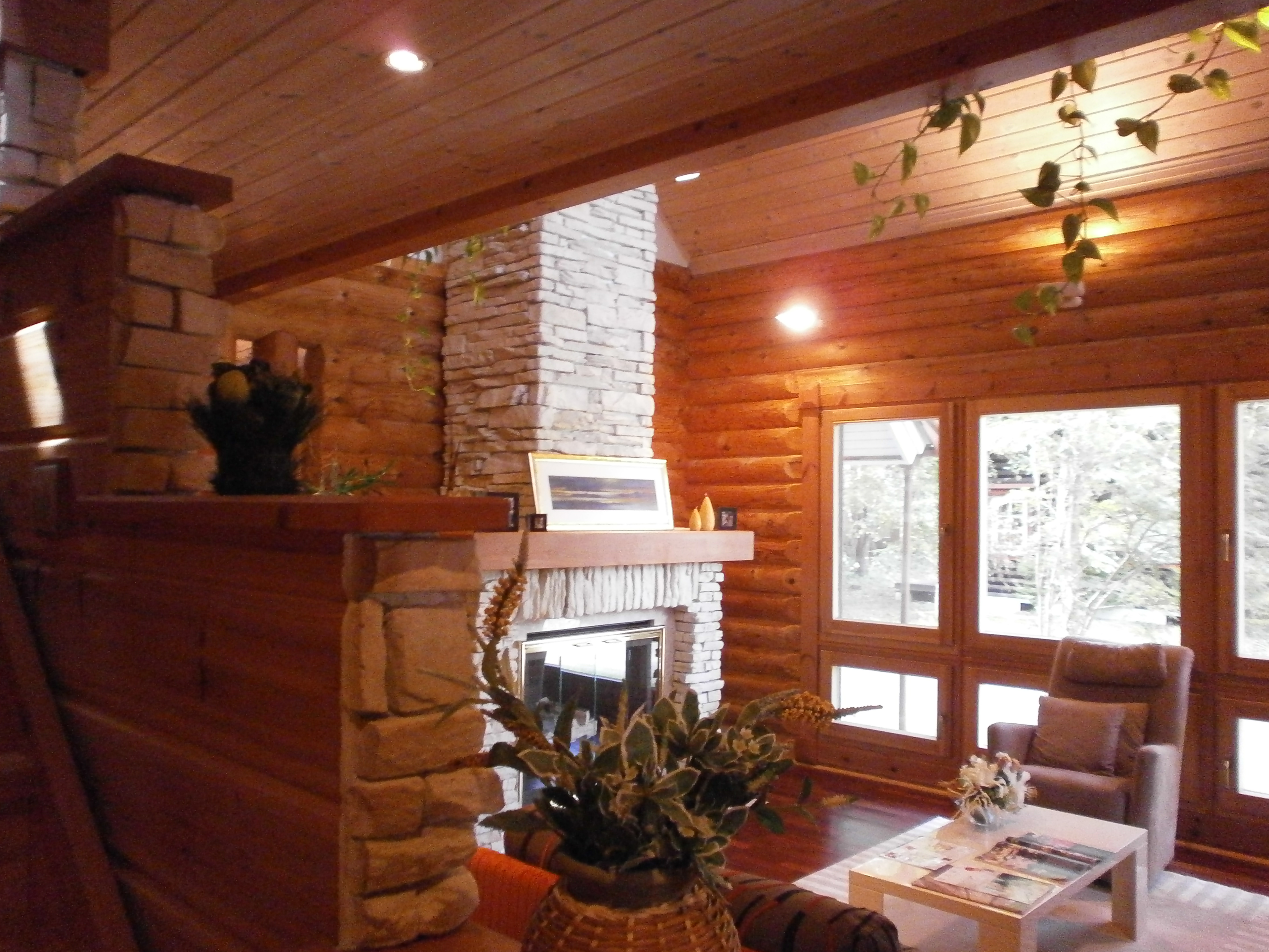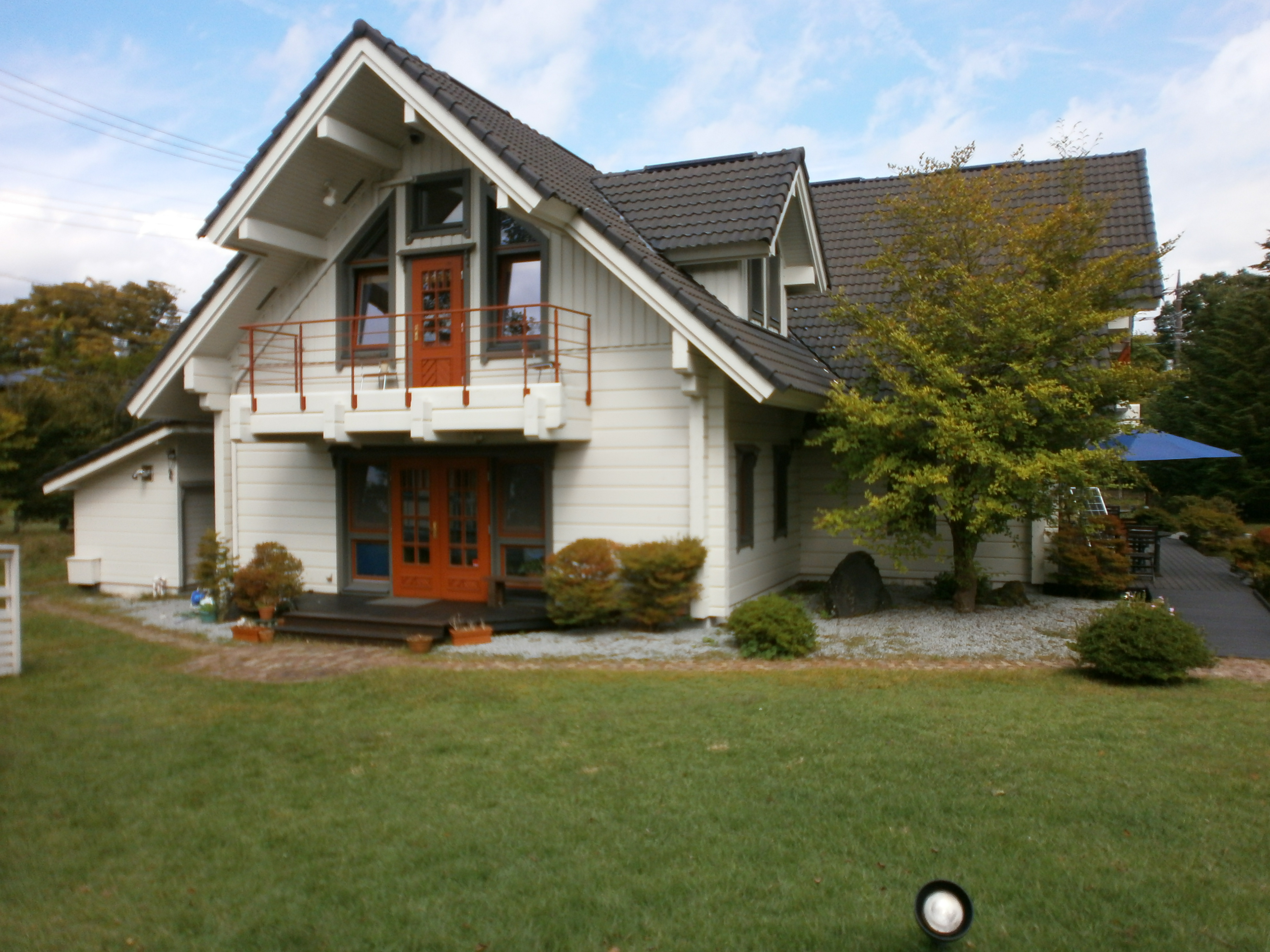富士山のふもと 山中湖にあるログハウス ビ・ボーンさんでひらかれる墨画展、