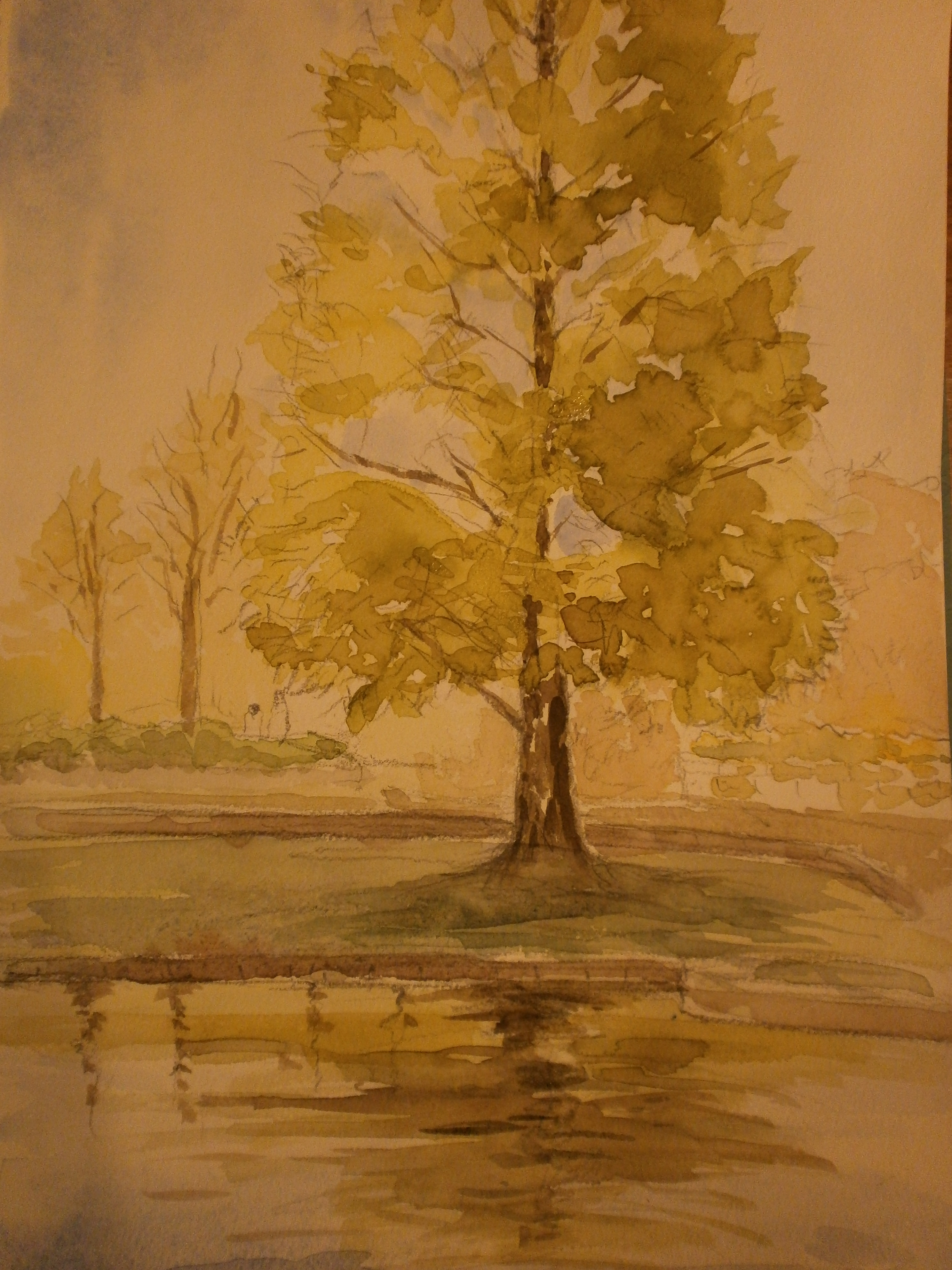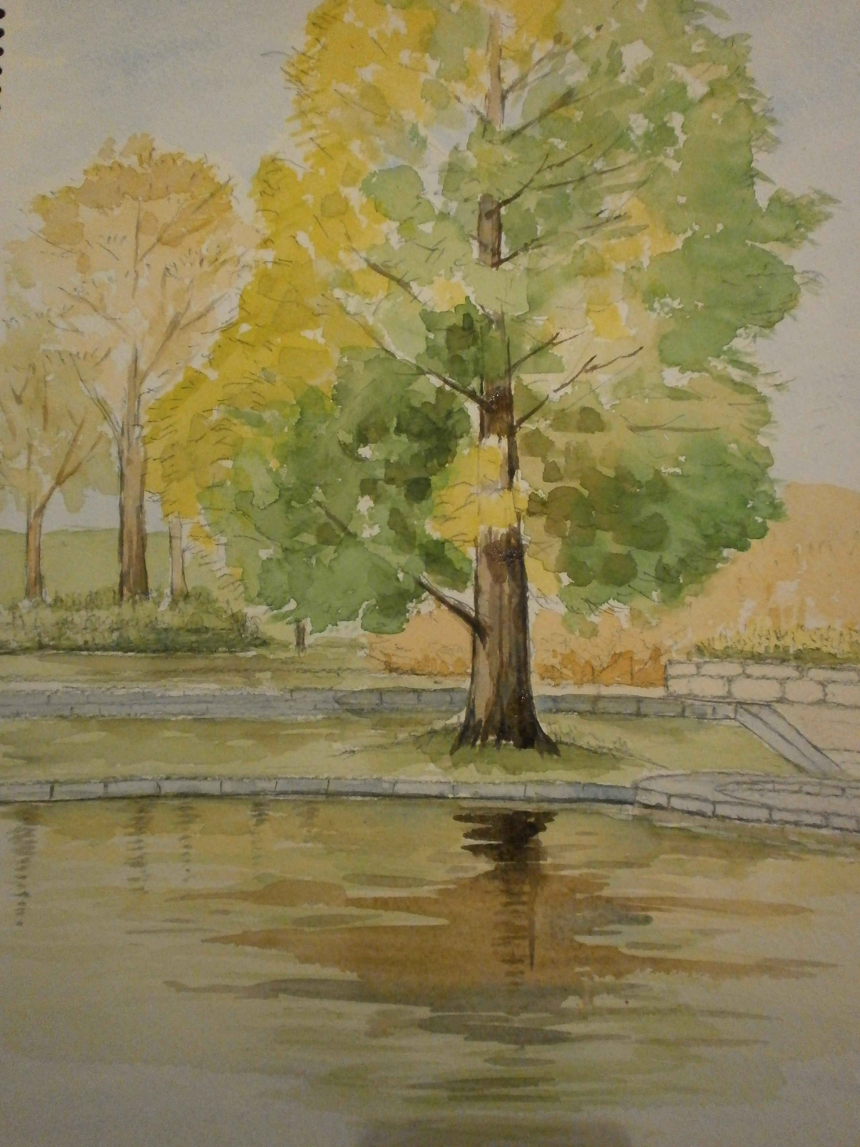 こちらの作品は 柴田治先生の水彩画教室で描かれた秋の風景。