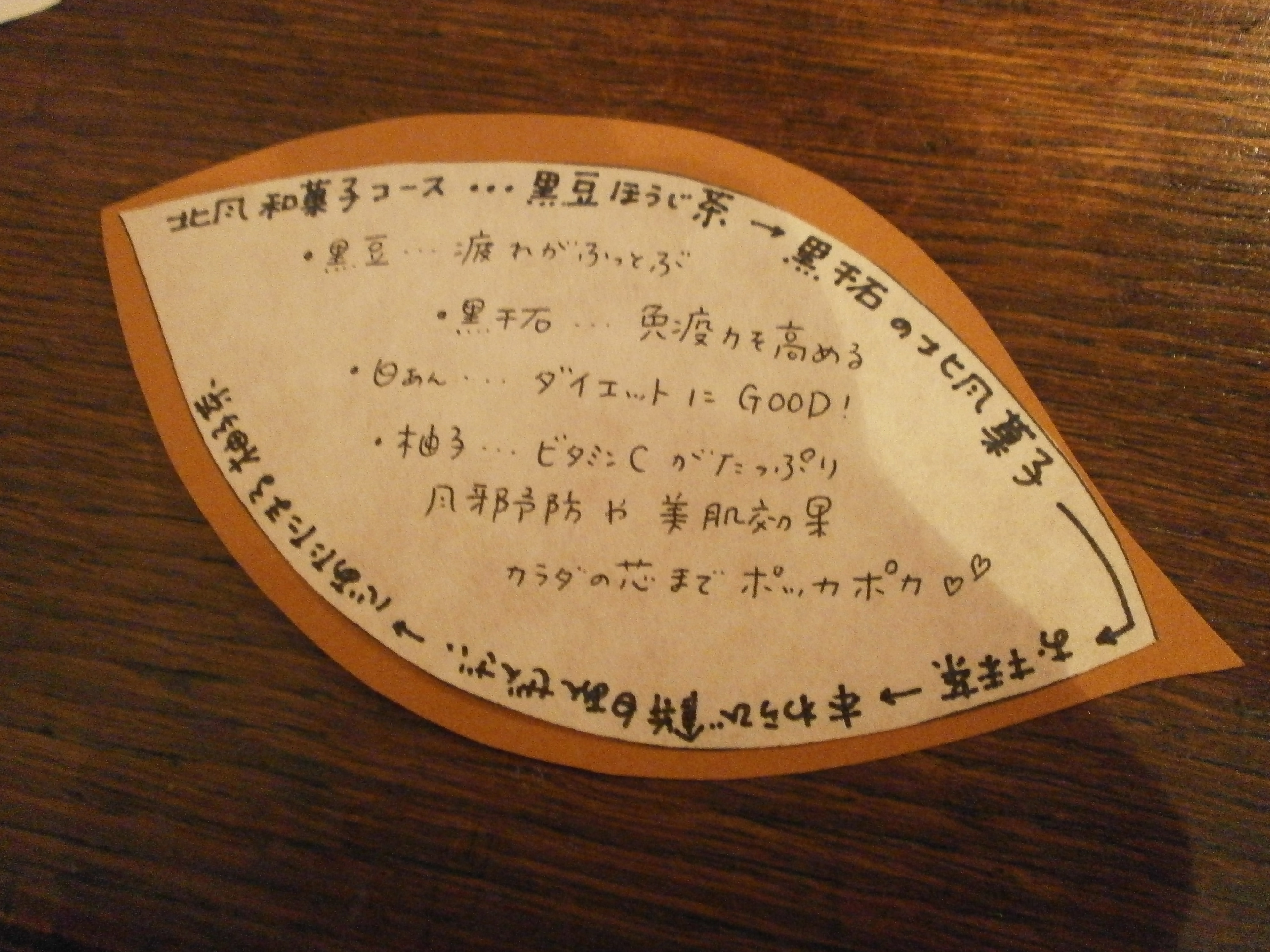 黒豆は疲労回復、黒千石は免疫力を高め、白あんはダイエットに効果的で柚子はビタミンCたっぷりで美肌効果に風邪予防・・・今日の北風コースで、体の芯までぽっかぽか。。。