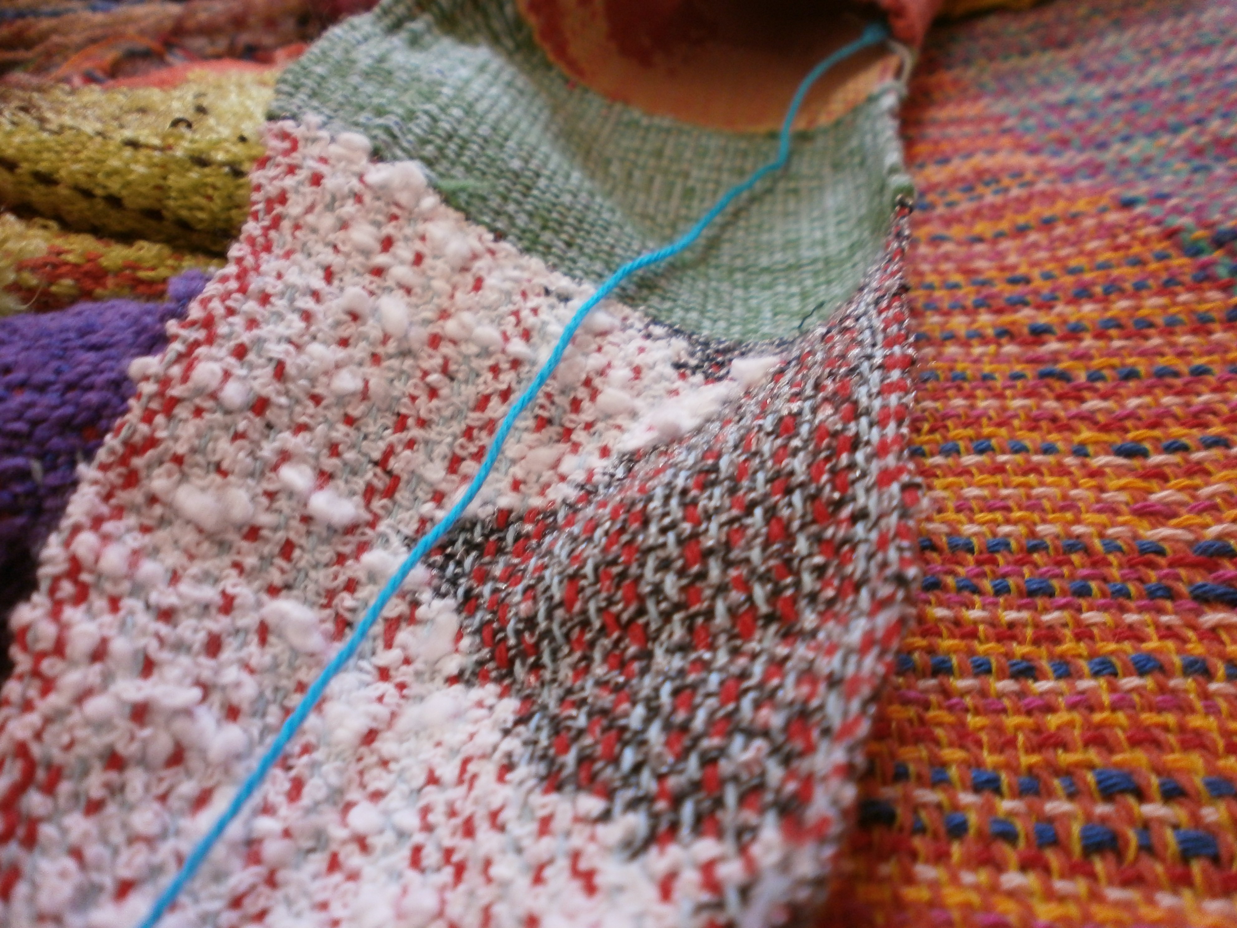 世界に二つとない色合いや風合いの反物を前に、作家さんは目がキラキラ!