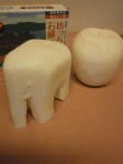 こちら、見本の りんごとぞうさん。石鹸を好きな形に削って作ります。