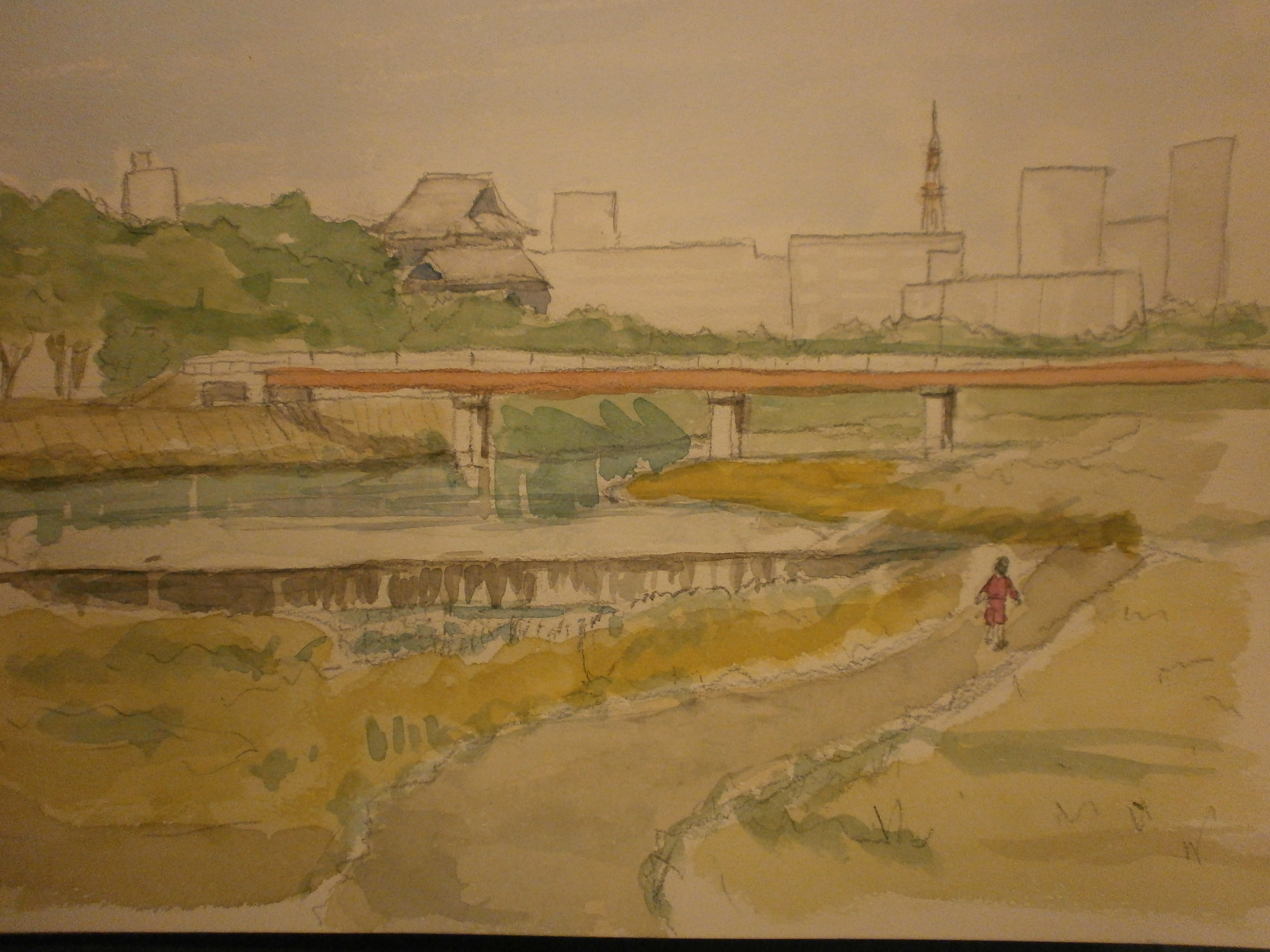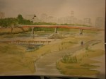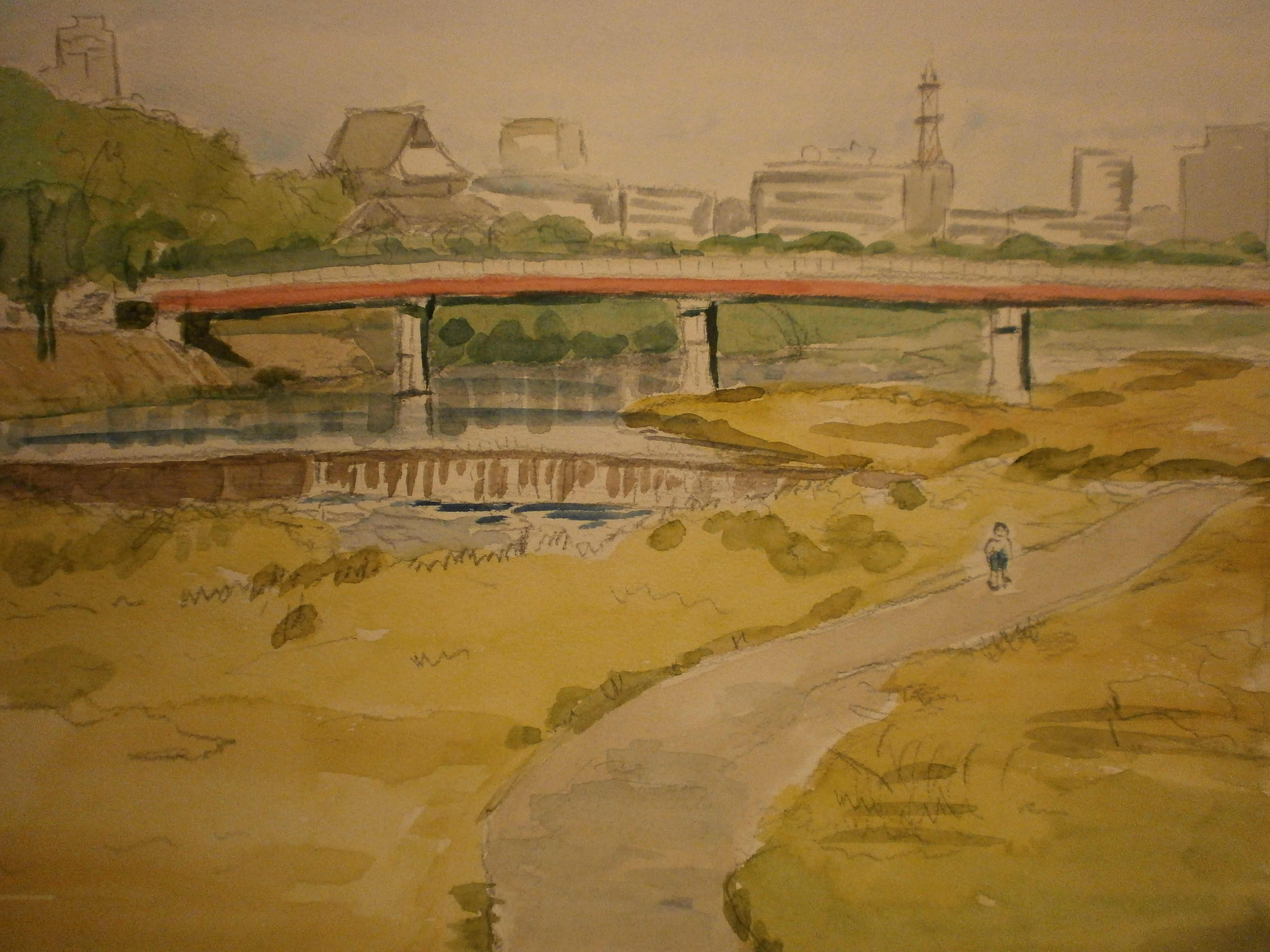 今日は、広瀬橋方面から眺めた宮沢橋の風景を 先生の撮られた写真をもとに描きました。