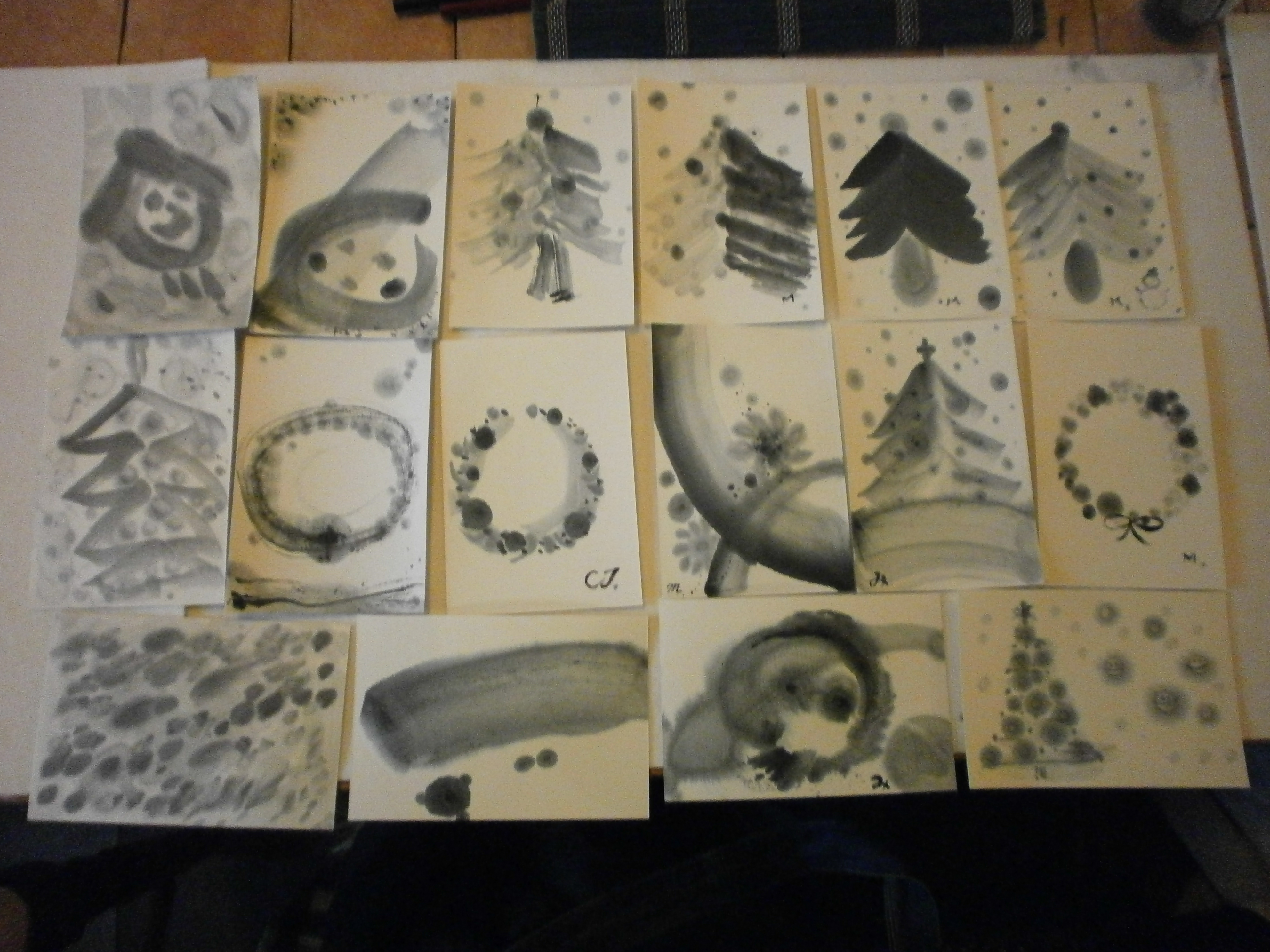 墨画教室の感想と感謝のことばを書いてくれた作文の束。
