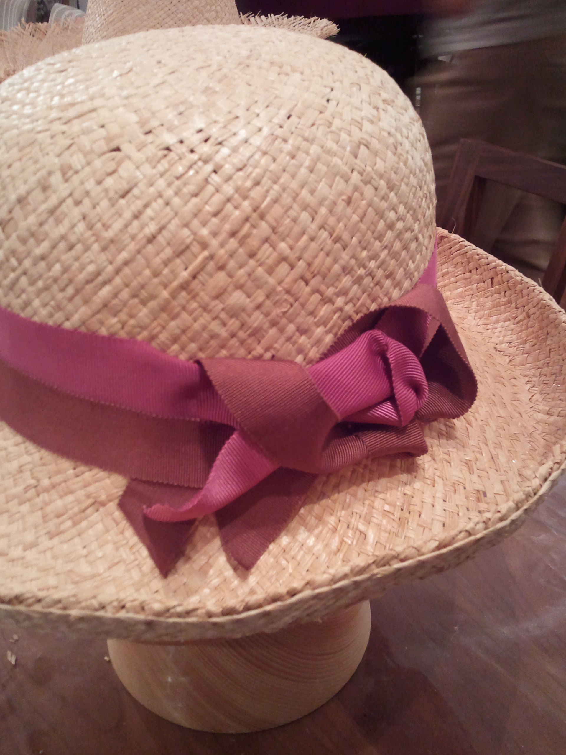 天然素材を生かしたラフィアの帽子は、木型を使って好みの形を作っていきます。