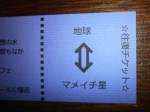マメイチ星への往復チケットには「帰ってこれないかもしれませんが」と注意書きあり。
