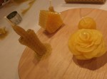 板状の蜜ろうを溶かして好きな形を作ってキャンドルに。
