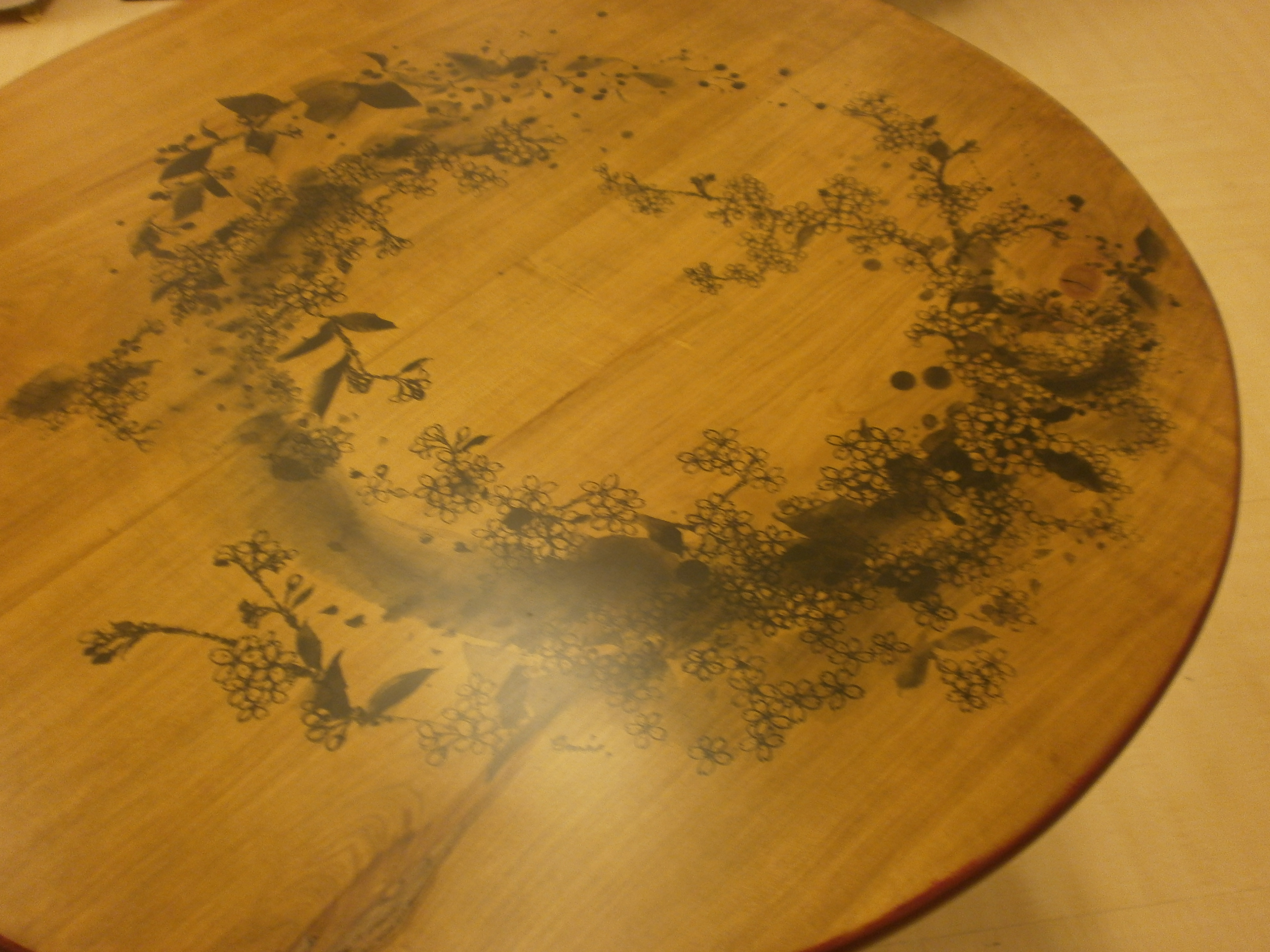 足つきの桜の円卓は 裏返すと鮮やかな朱色の漆面に一転。リバーシブルで2つの表情で使えます。