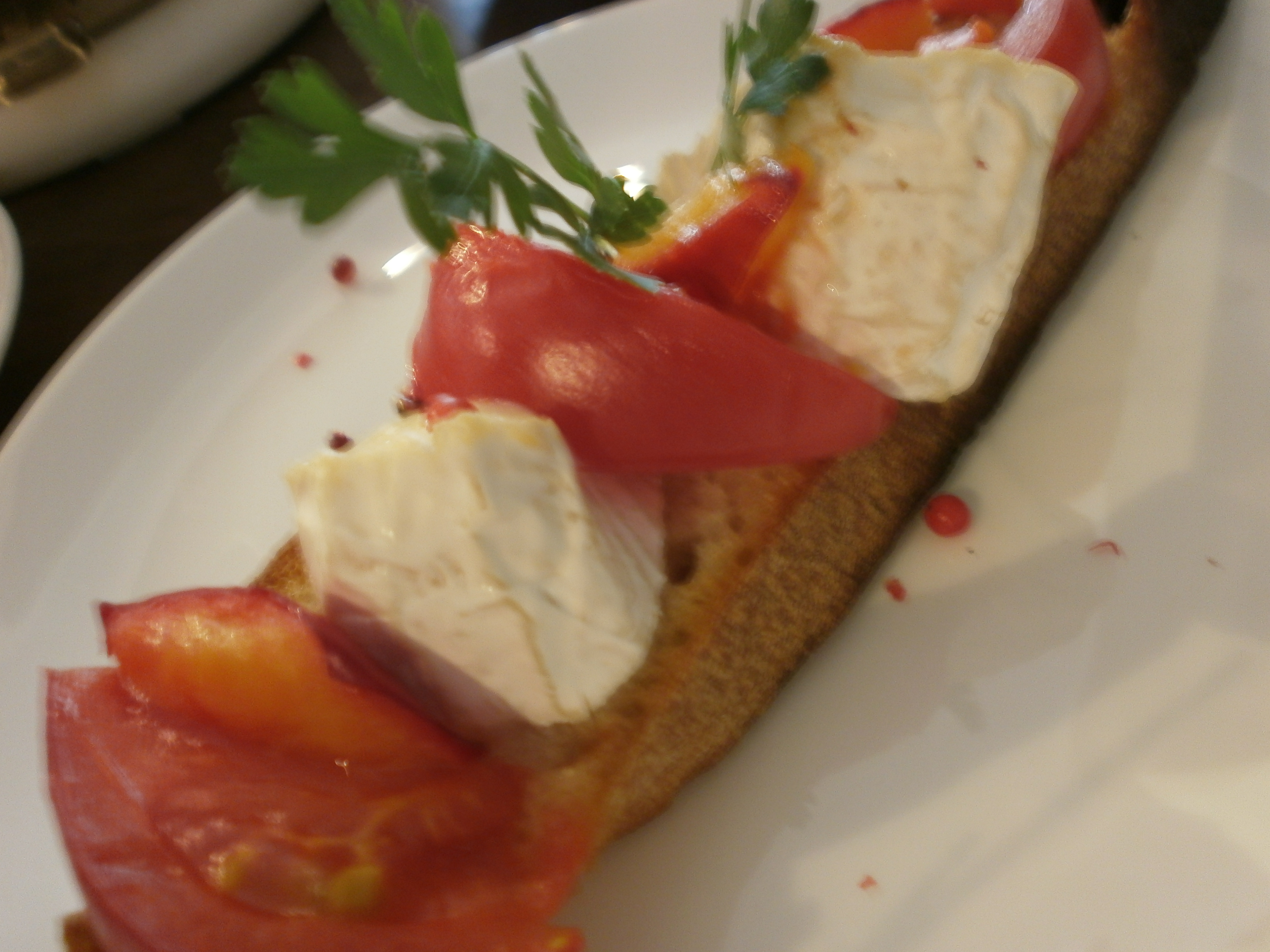 ■カマンベールチーズ、トマト、プラムのトースト・・・ピンクペッパーがピッタリ!お好みでプラムジャムを添えて色合いもカワイイ!バケットです