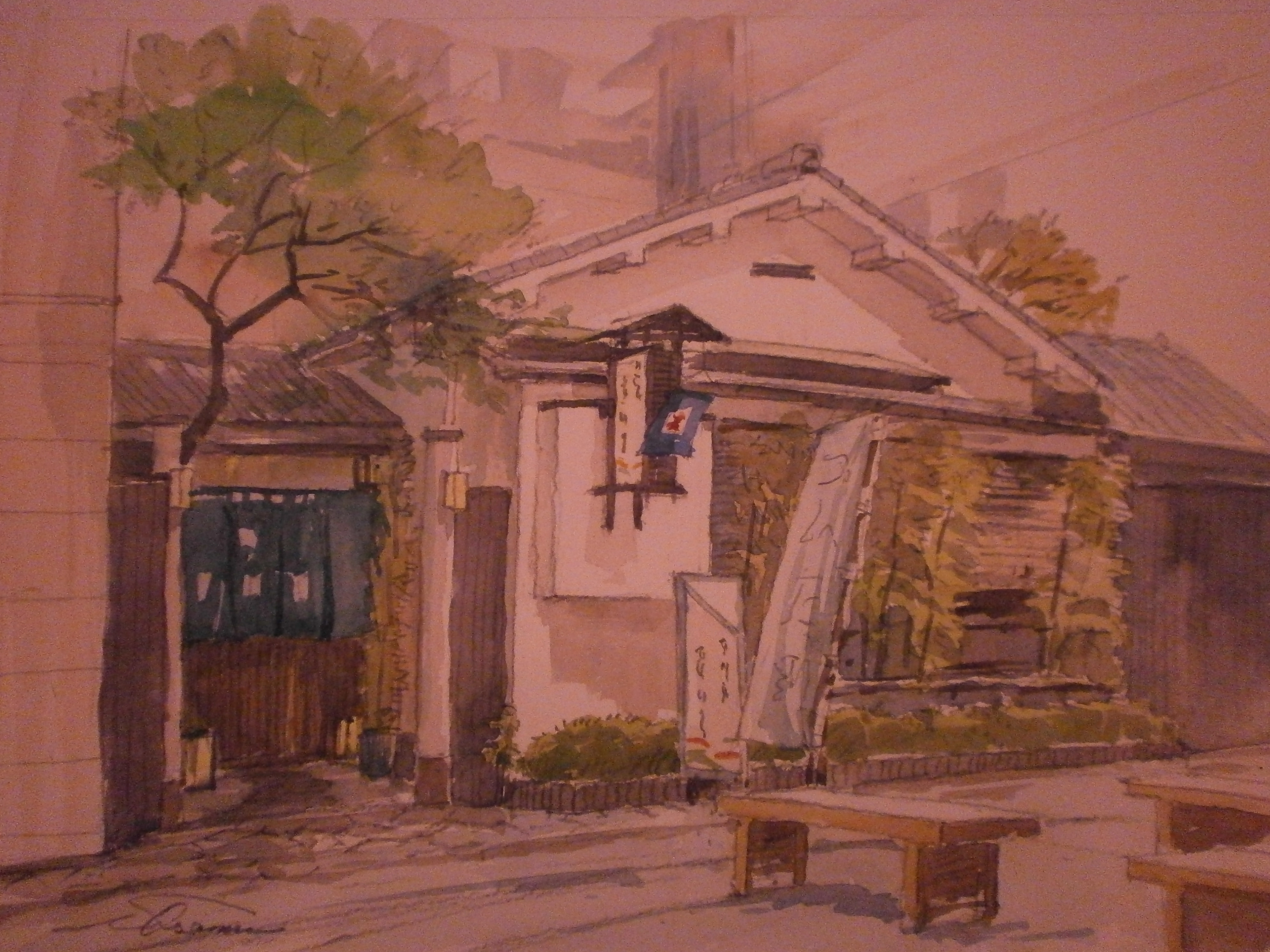 今日は仙台の老舗甘味処「彦一」さんの店構えを描きました。