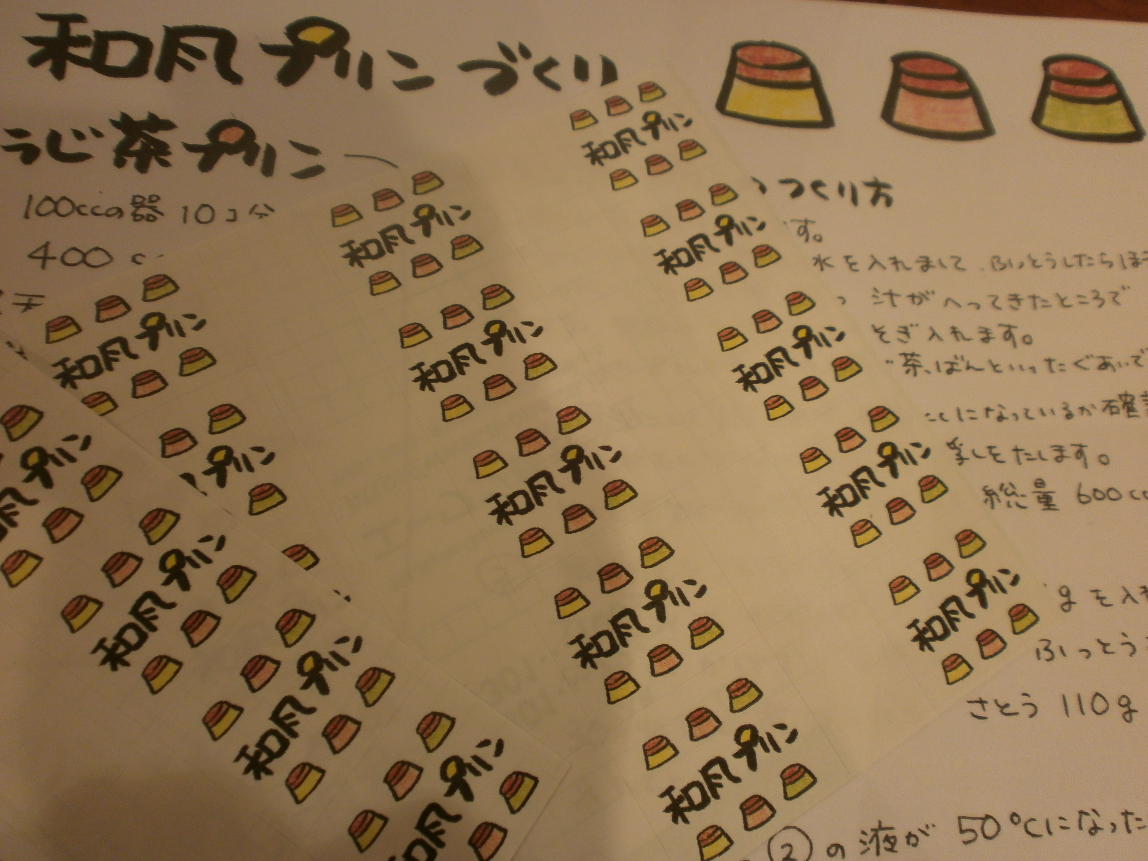 今日のプリンは 卵を使わず カフェインのないほうじ茶や寒天など