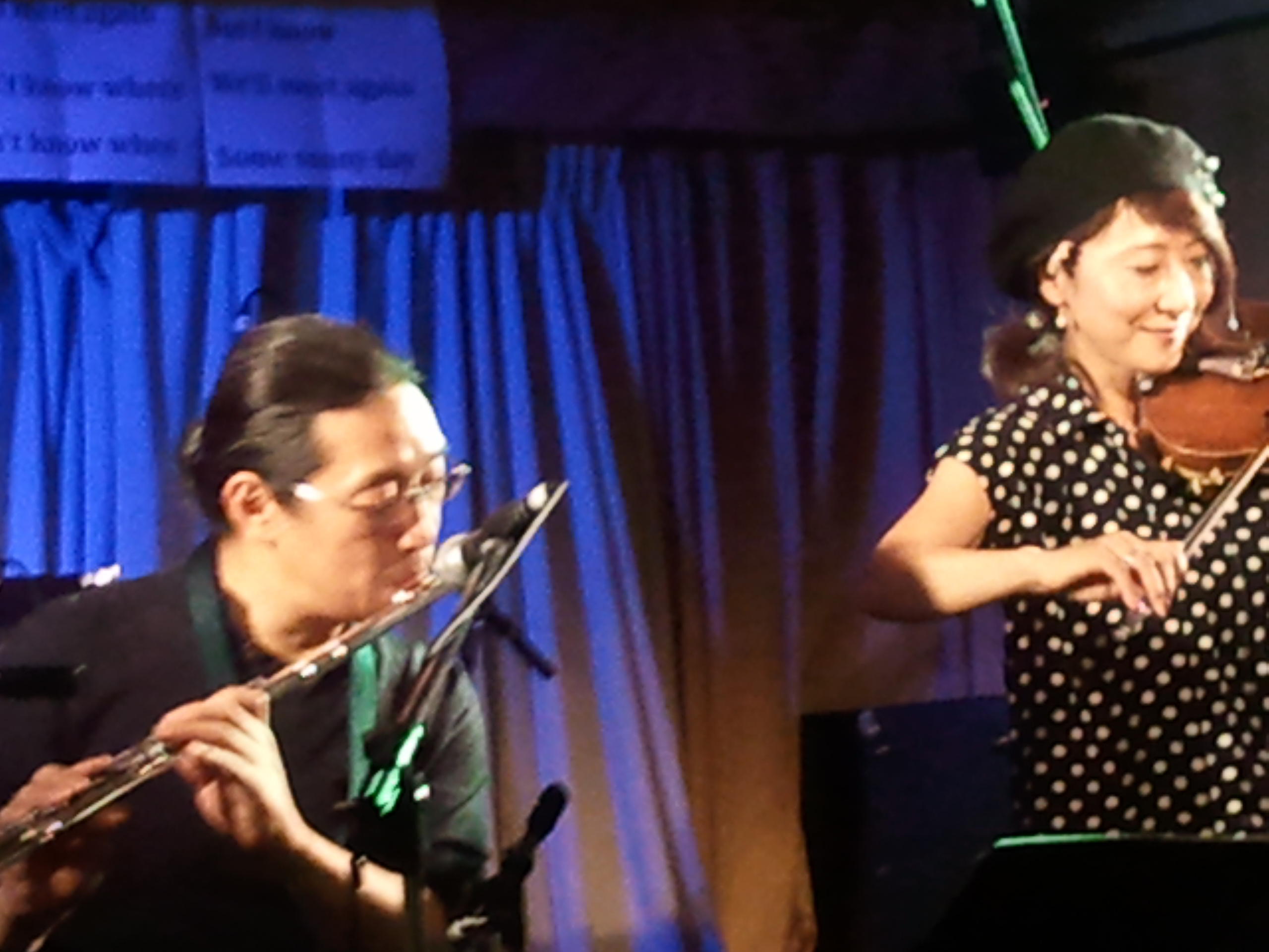 ゲストメンバー・violin金原千恵子さんとsax・flute山本拓夫さん