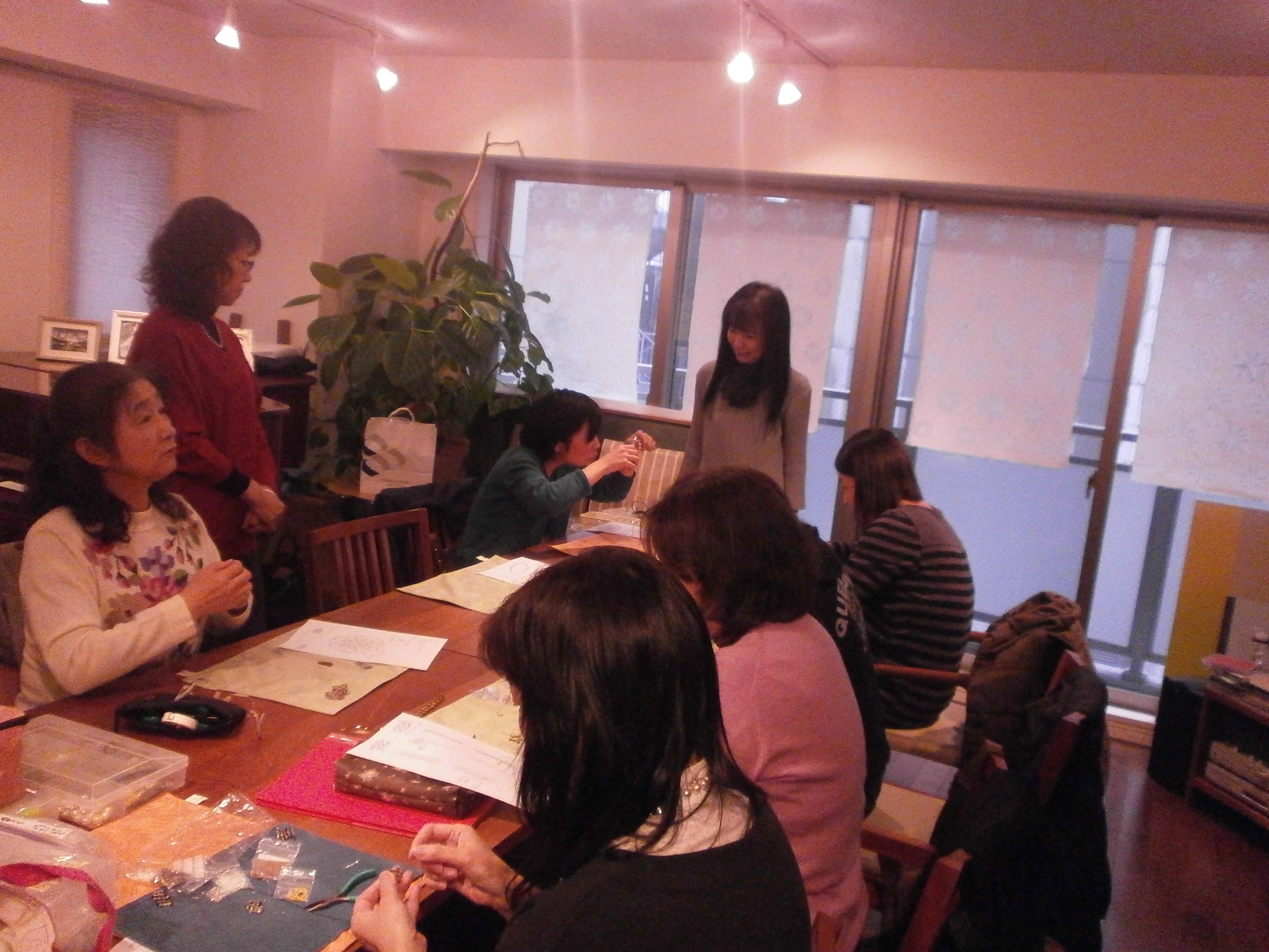 今日はベテラン生徒さんに加わり3名の方がシュガーパールのハフネックレスを体験されました。