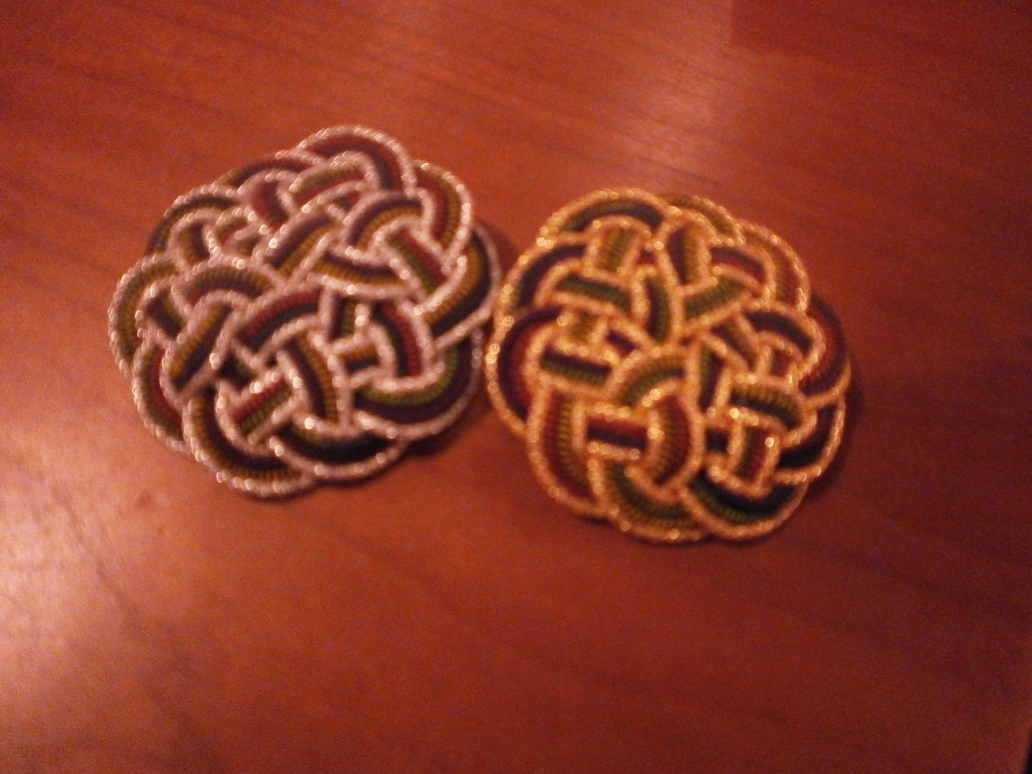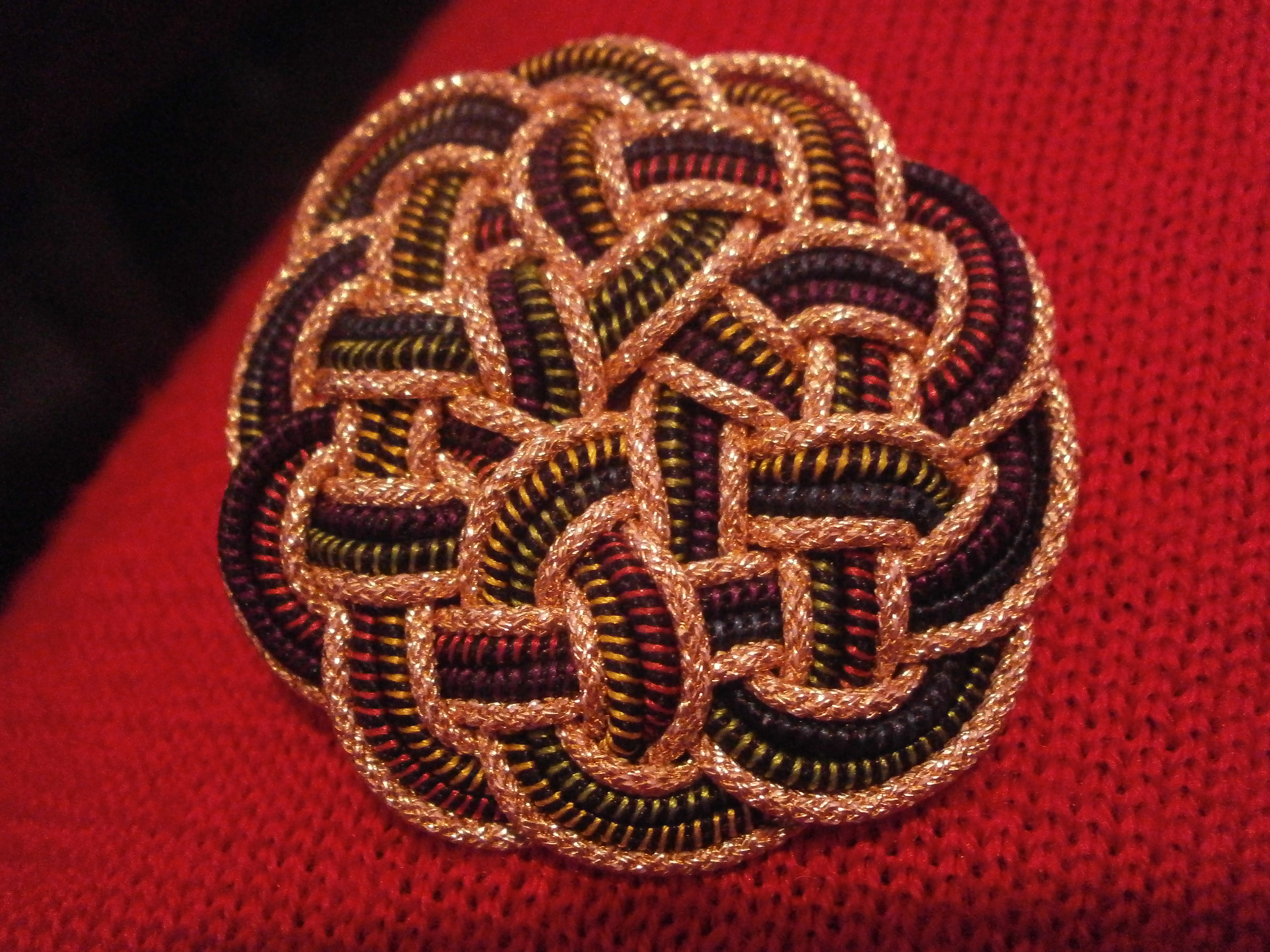 伝統的袈裟結びを使って組紐のブローチを作ったり