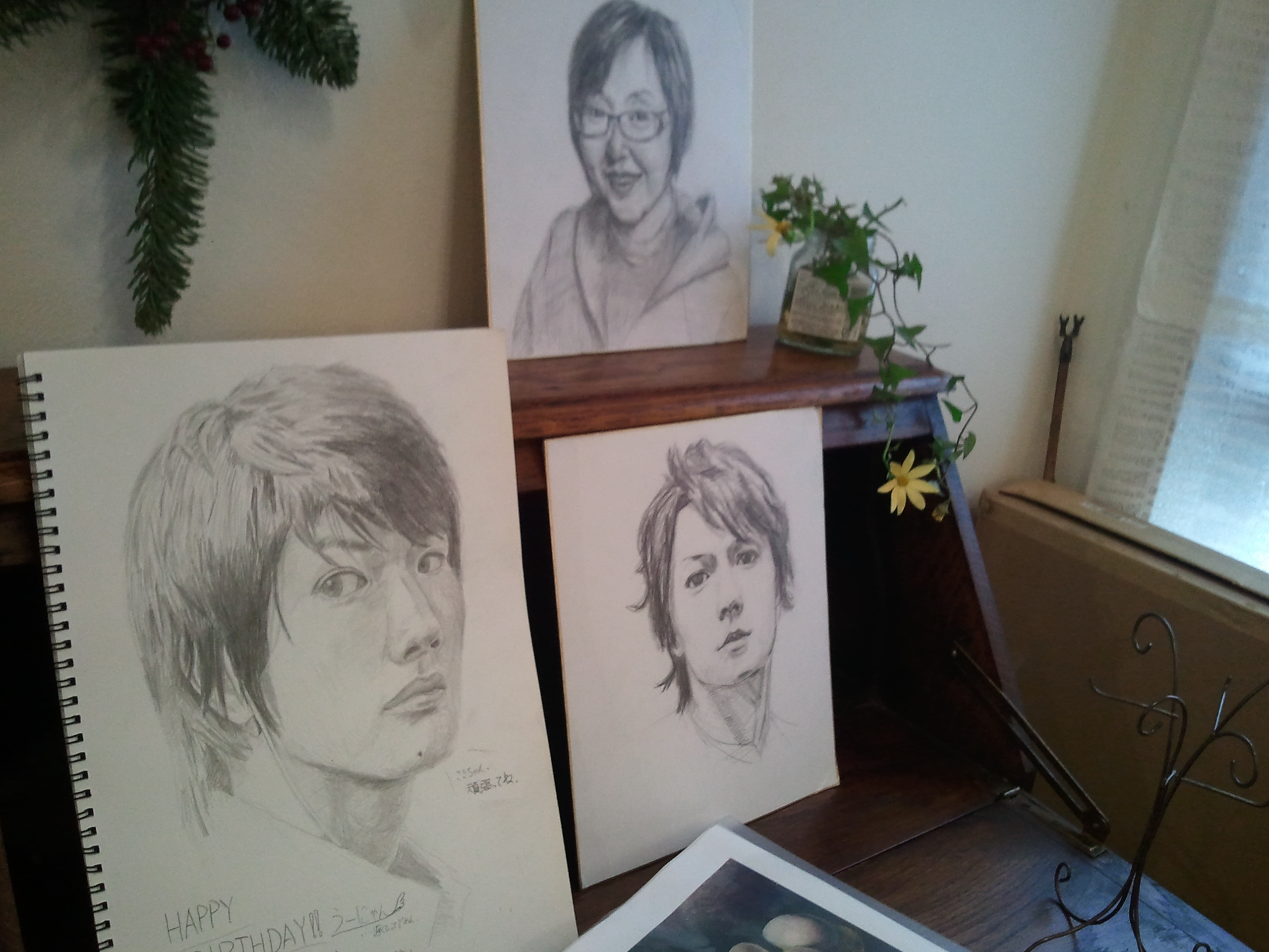佐藤唯氏の絵画展、そして似顔絵描きます!コーナー。