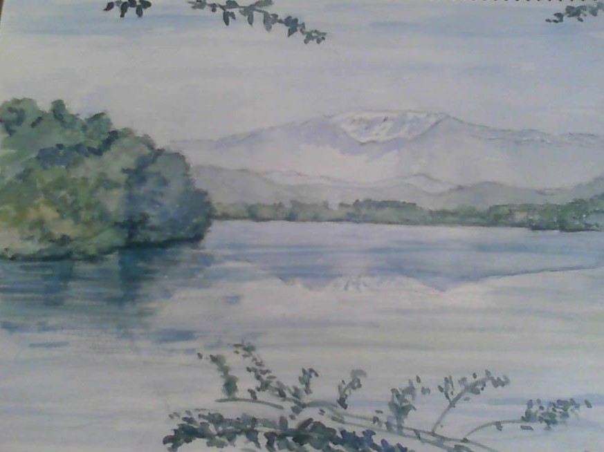 蔵王の山並みが水面にうつる 涼しげな風景を習いました。