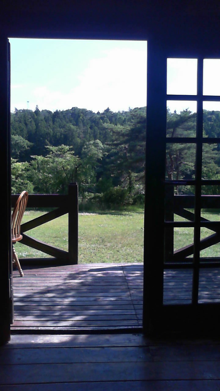 二階のギャラリーからは 緑しか見えないというお部屋の窓。