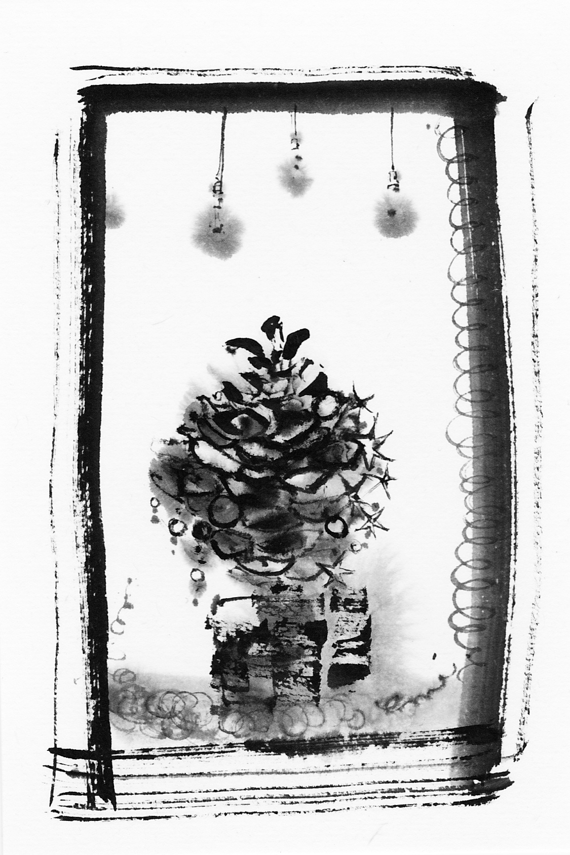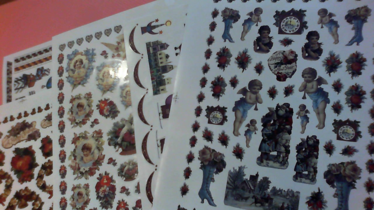 白い陶器やオーナメントにクリスマスシールをあわせて