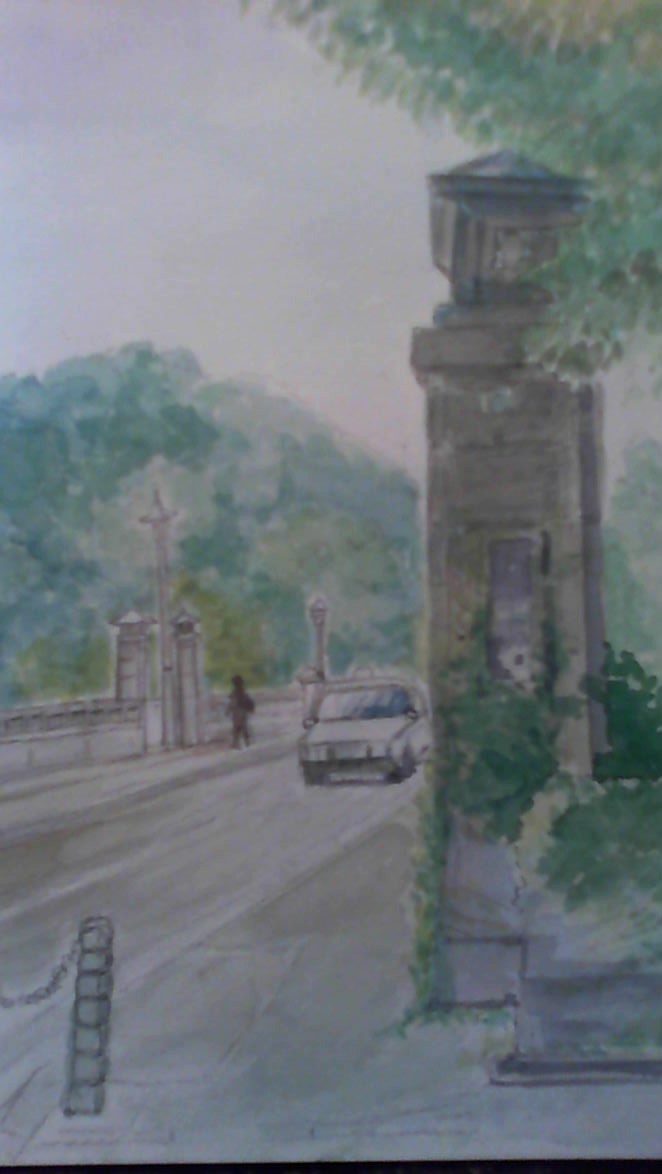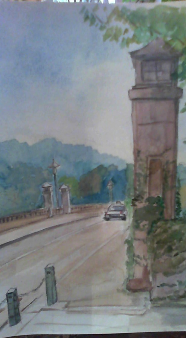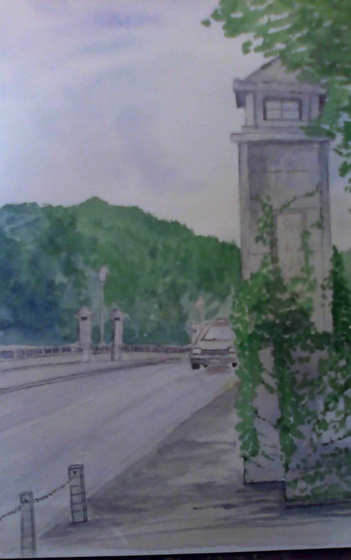 広瀬川を挟み青葉通り仙台市街と青葉山を結ぶ「大橋」を描きました。