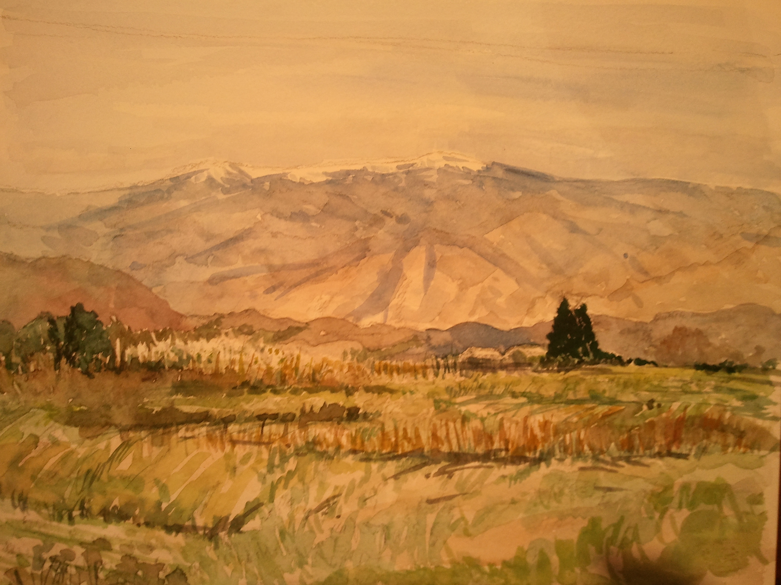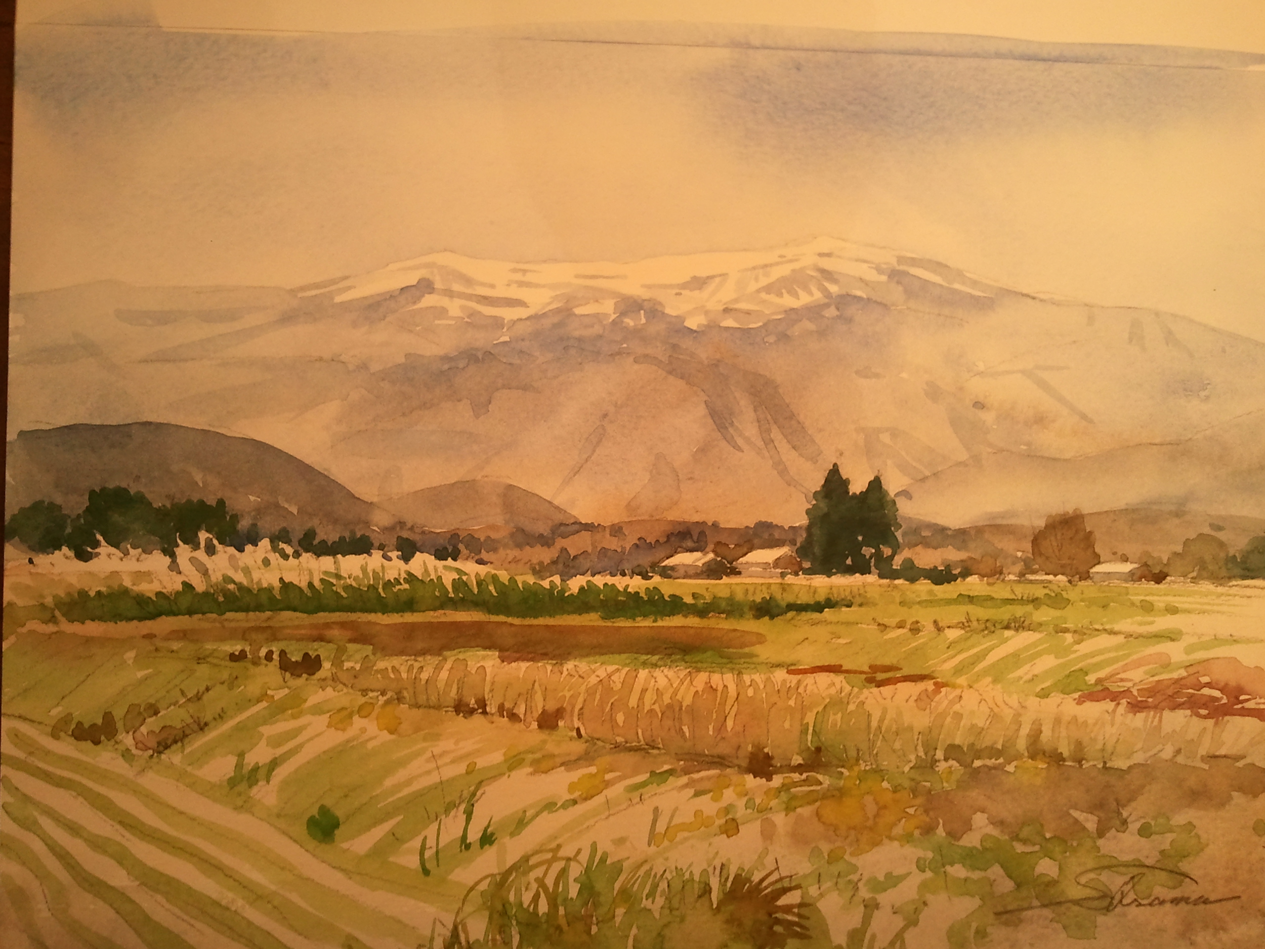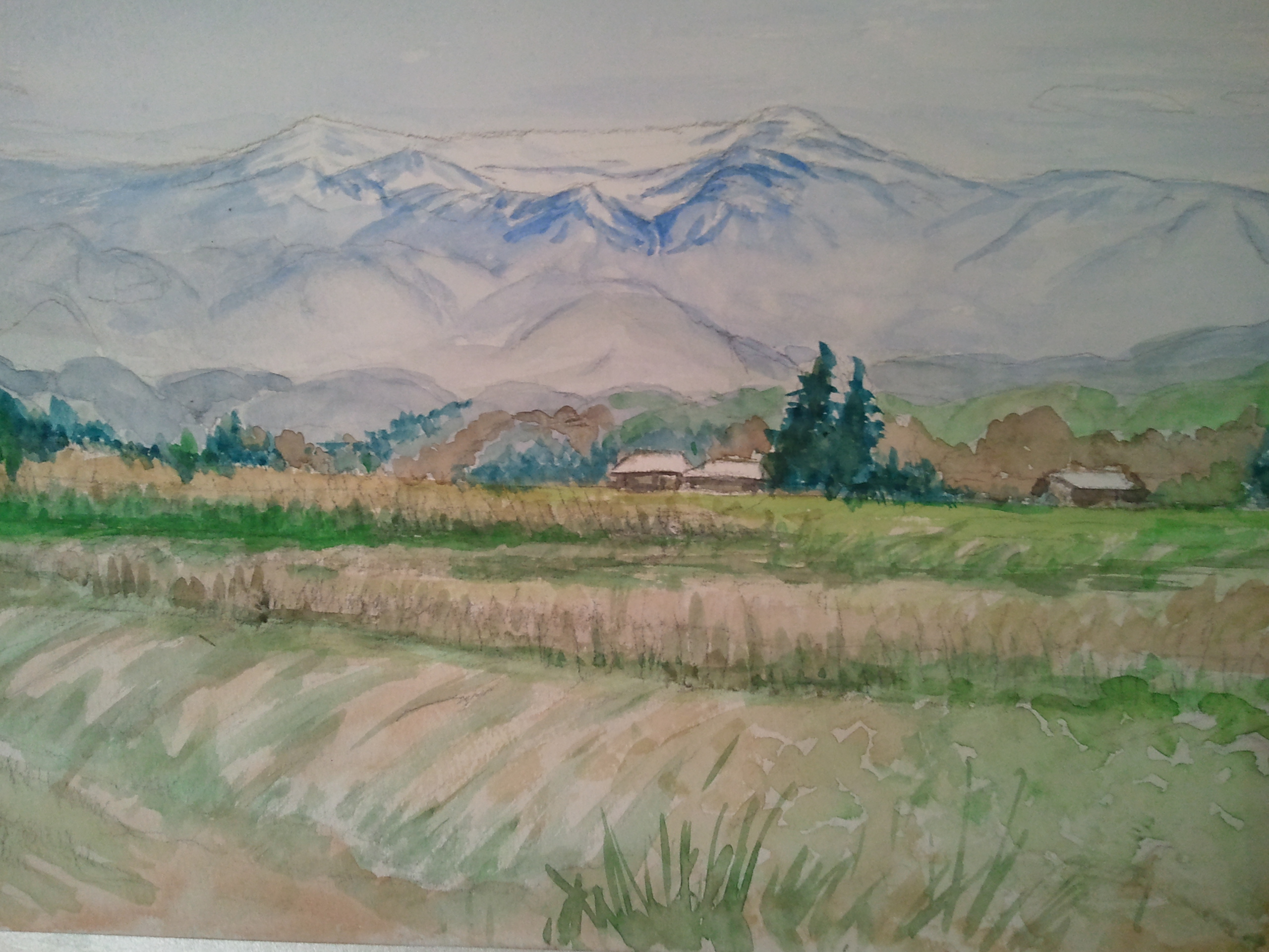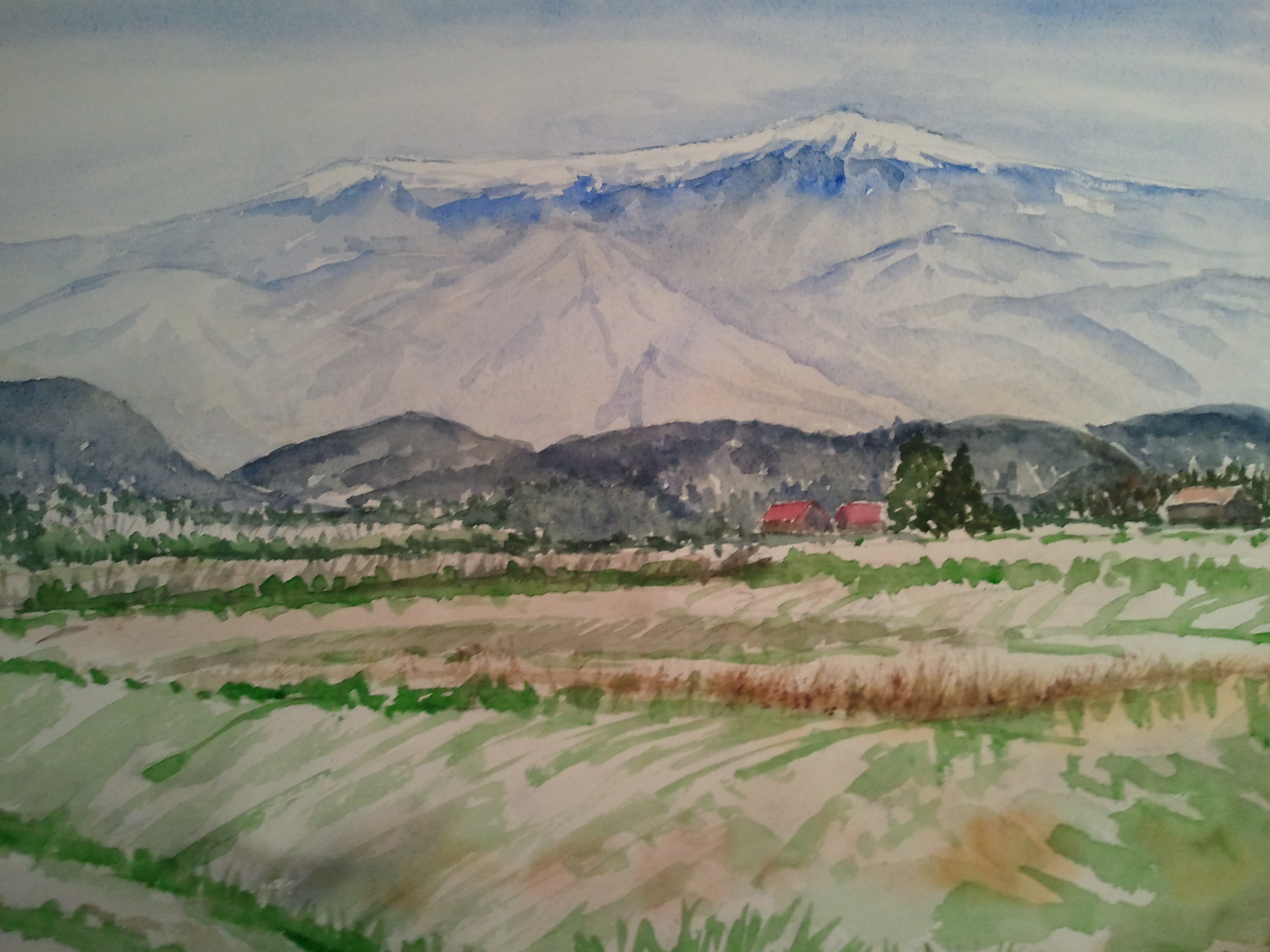 そびえる蔵王山の風景を描きました。