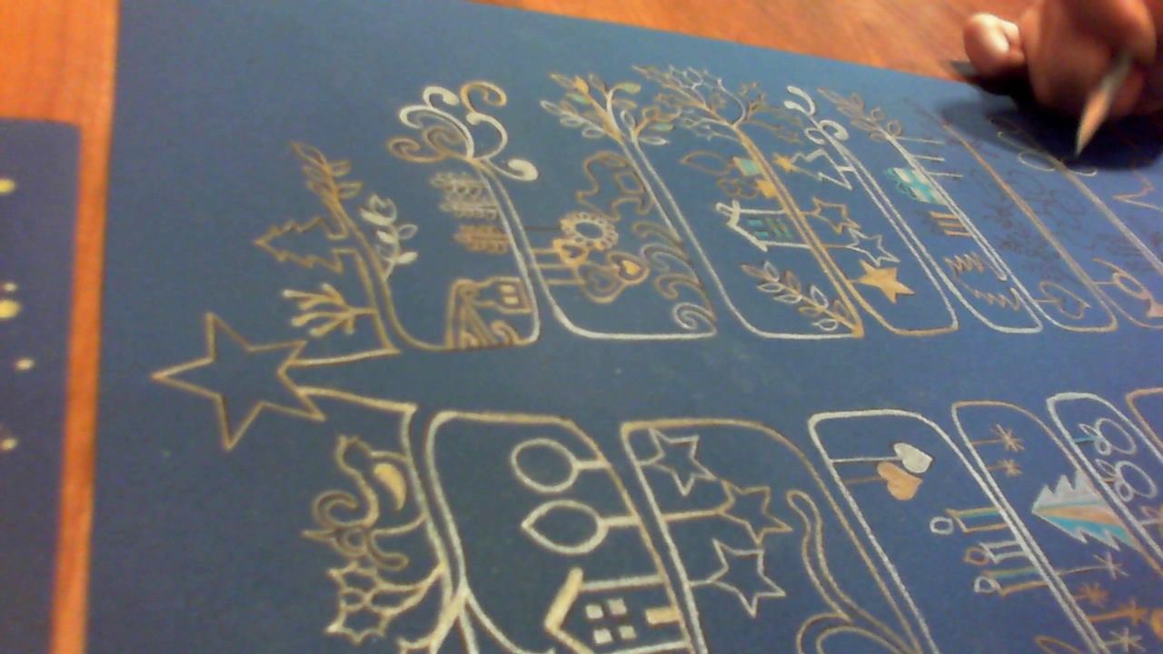 ゴールドやシルバーの色鉛筆やペンでふちを取り、
