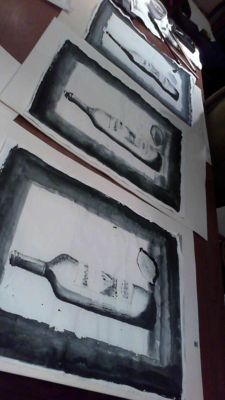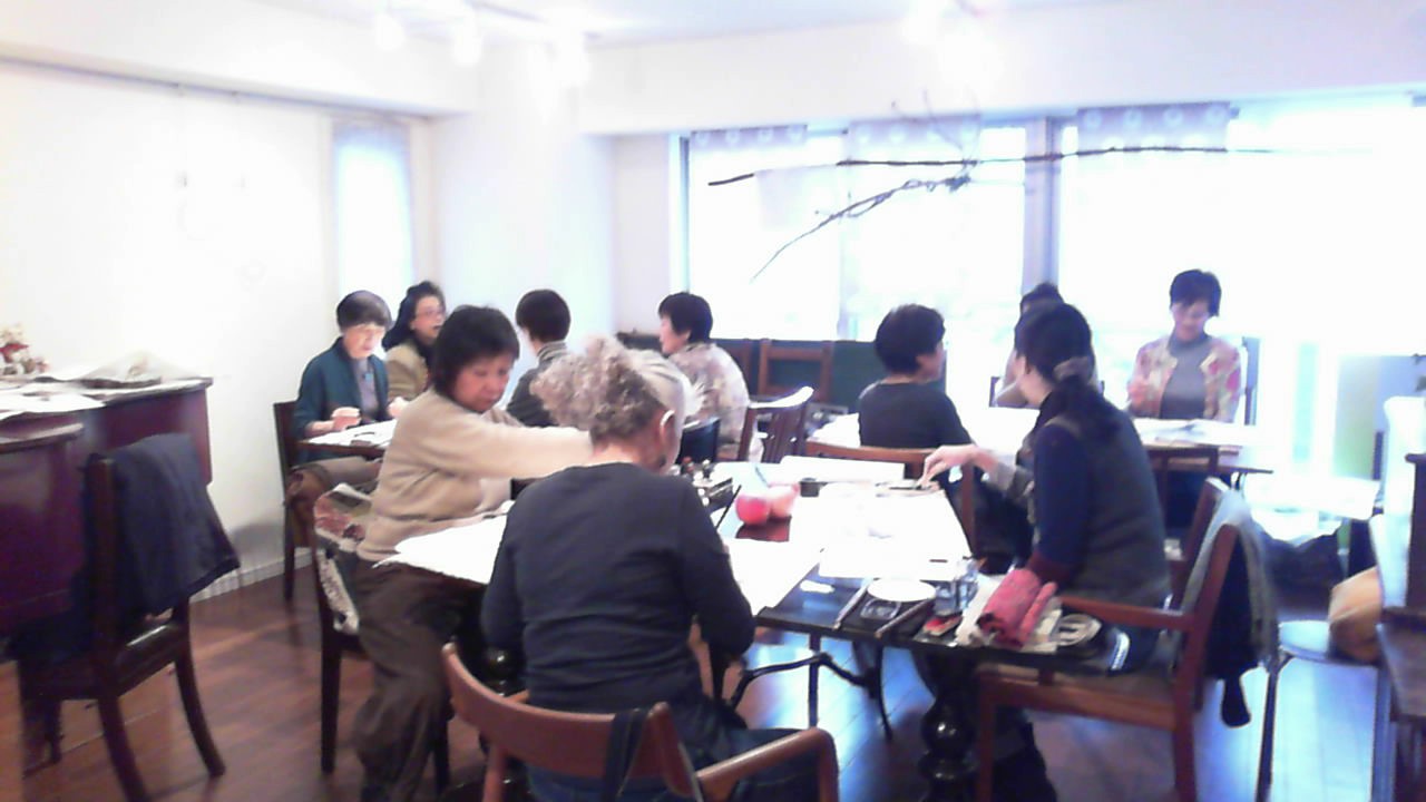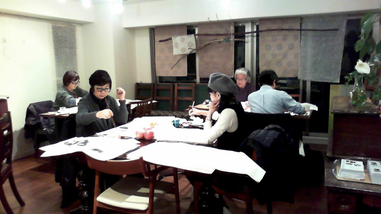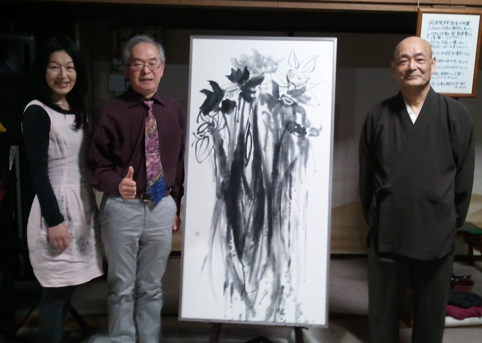お線香と墨の香り、読経、ピアノ、ご本尊さまの前で描かせていただくという仏縁!
