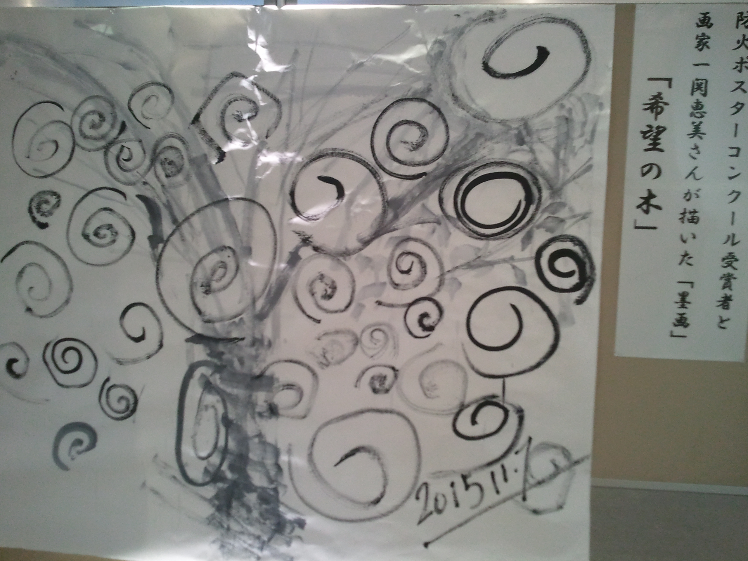 去年11月に行った表彰式で、子供たちと一緒に描いた大きな一枚の墨画。