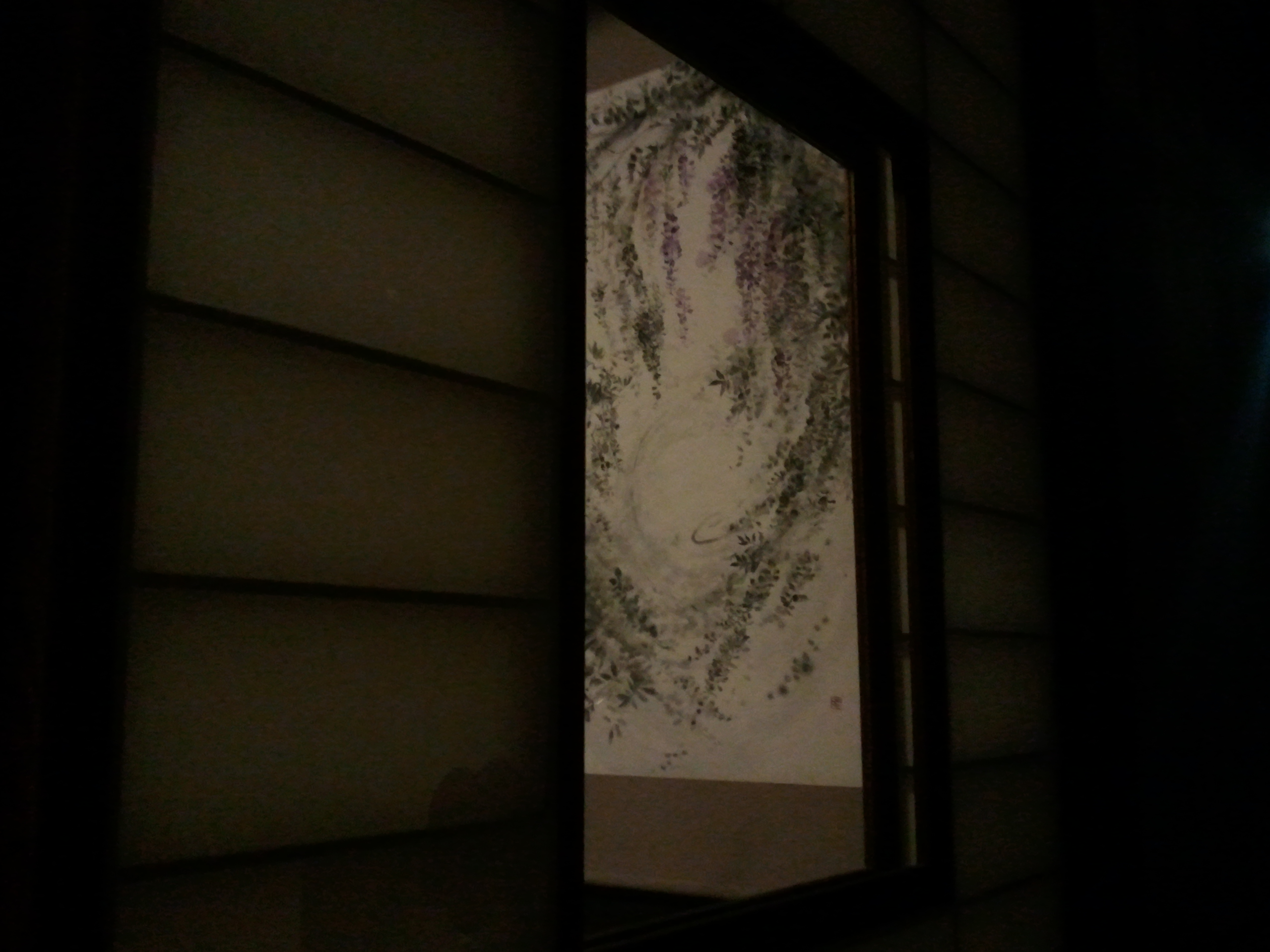 2階は薄明かりの床の間に掛け軸・・・
