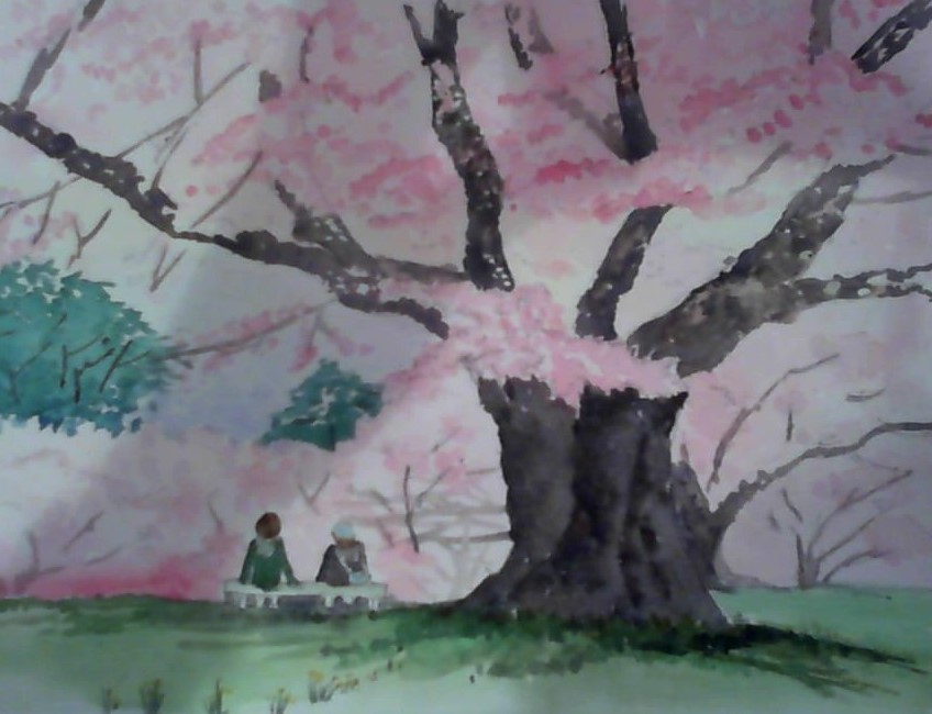 去年の写真をもとに、満開の桜の風景。