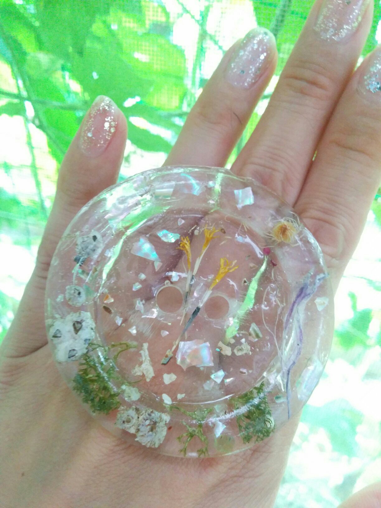 植物やハーブ、貝殻など、自然素材をそのまま閉じ込めたオリジナルレジン・アクセサリーを制作します。