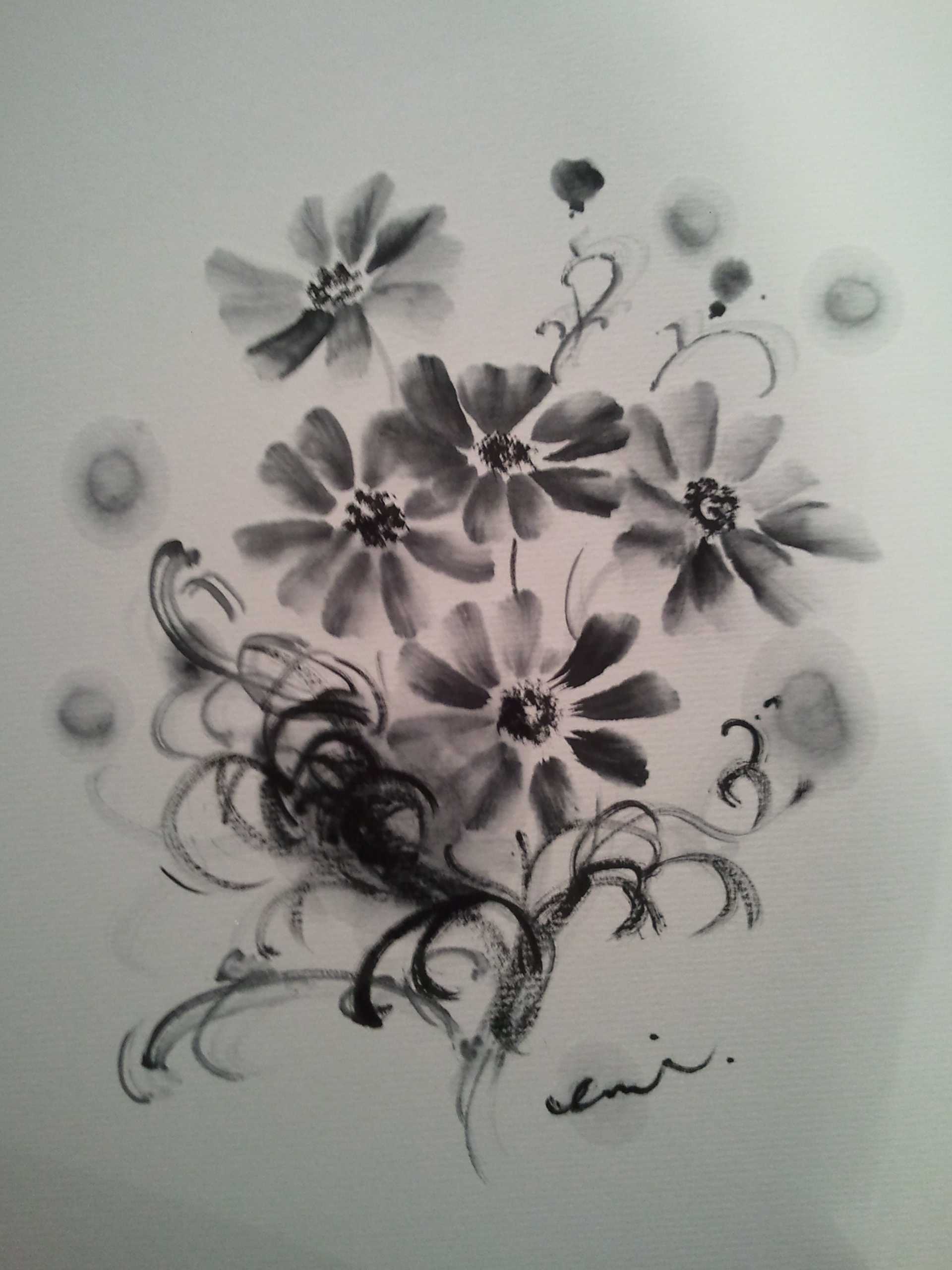 墨画でコスモスを描きます。初めての方でも大丈夫。
