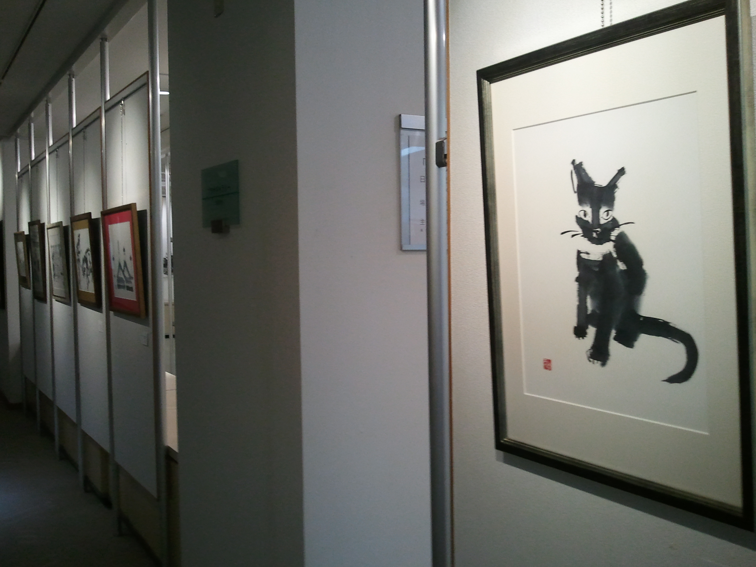 額縁や軸装などをほどこさず、美術館の美しい白壁にフラットに展示され、