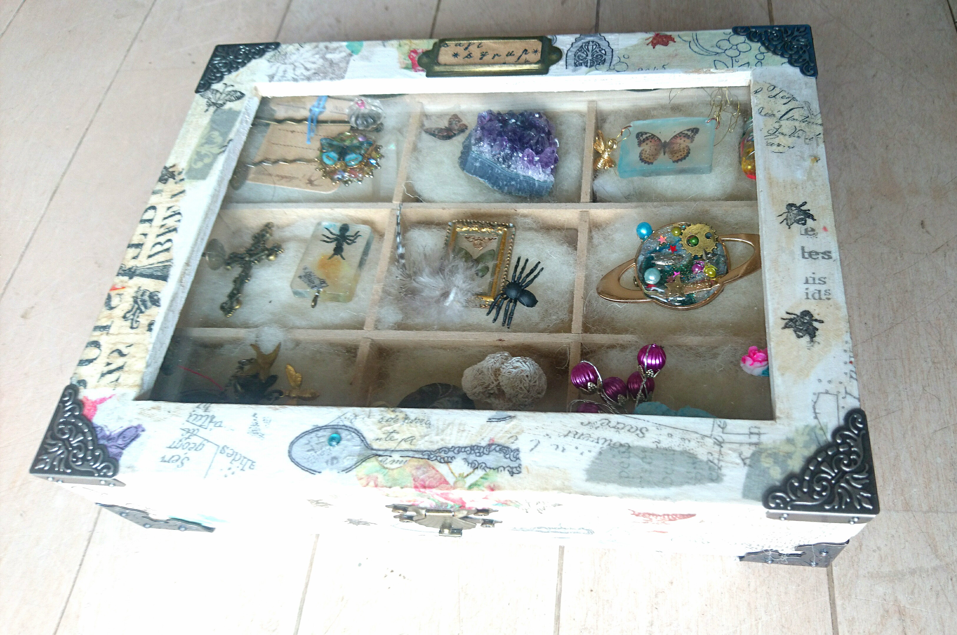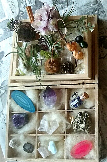 前回好評だった思い出を入れる『標本箱』に加えて夢を入れる『バッグ』(20×30マチ付)のデコパージュワークも同時開催!