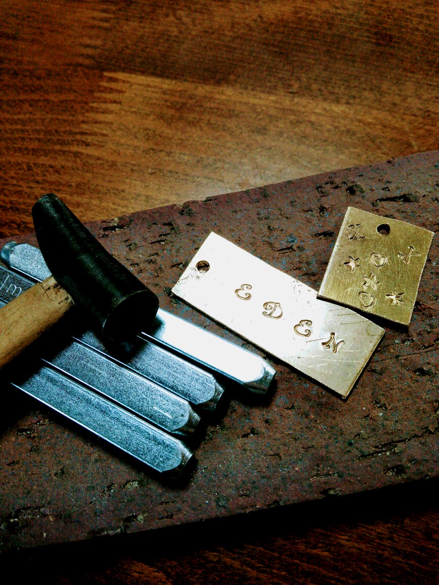 金属の真鍮プレートにアルファベット文字を打刻し、名前や好きな単語などを打ってみましょう。
