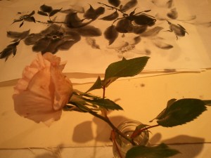 窓からテーブルに入る陽ざしが、かわいい影をつくっていました。