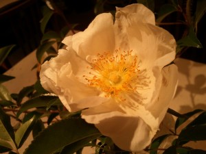 白い一重の花が印象的「なにわい薔薇」をお庭から御裾分け頂き、