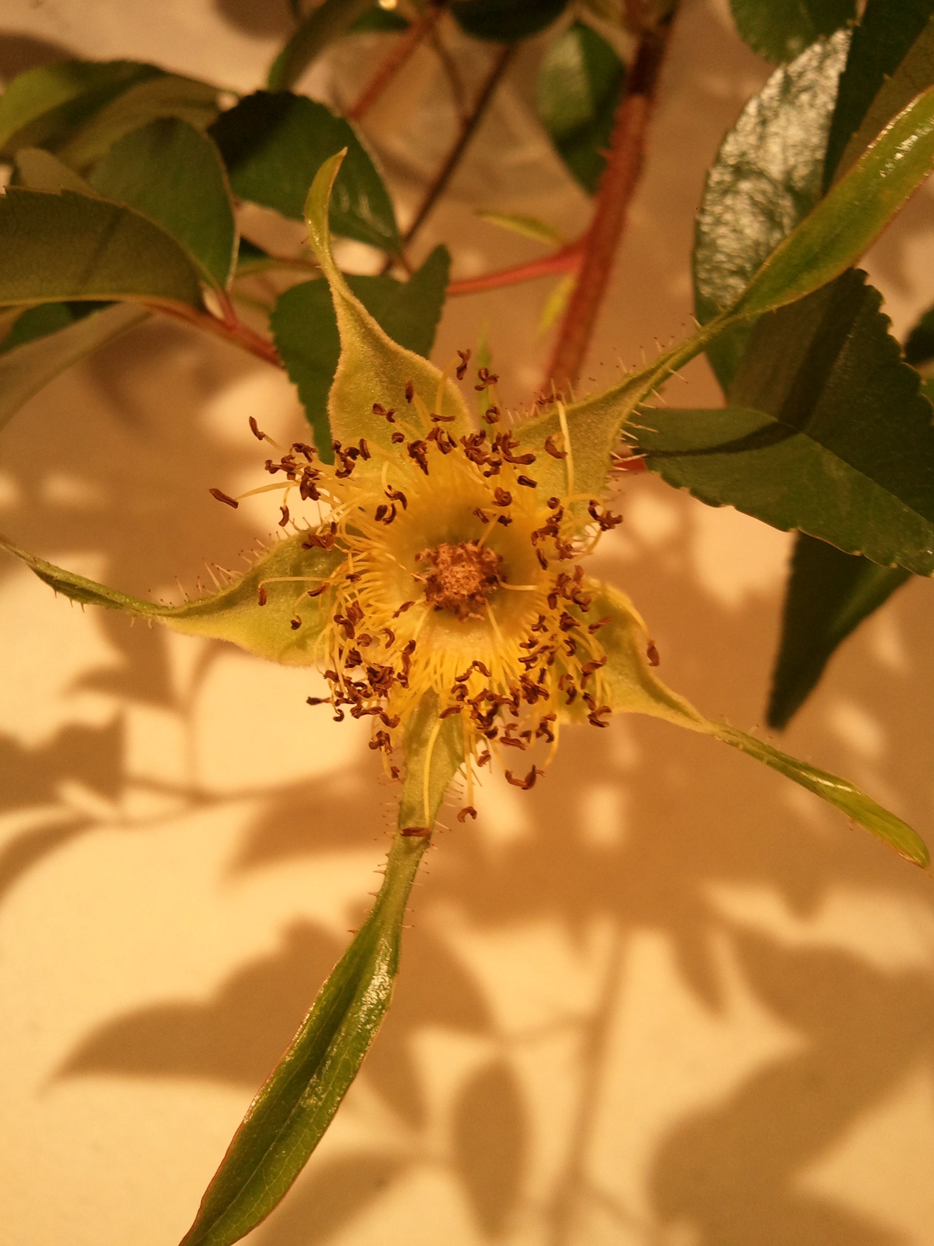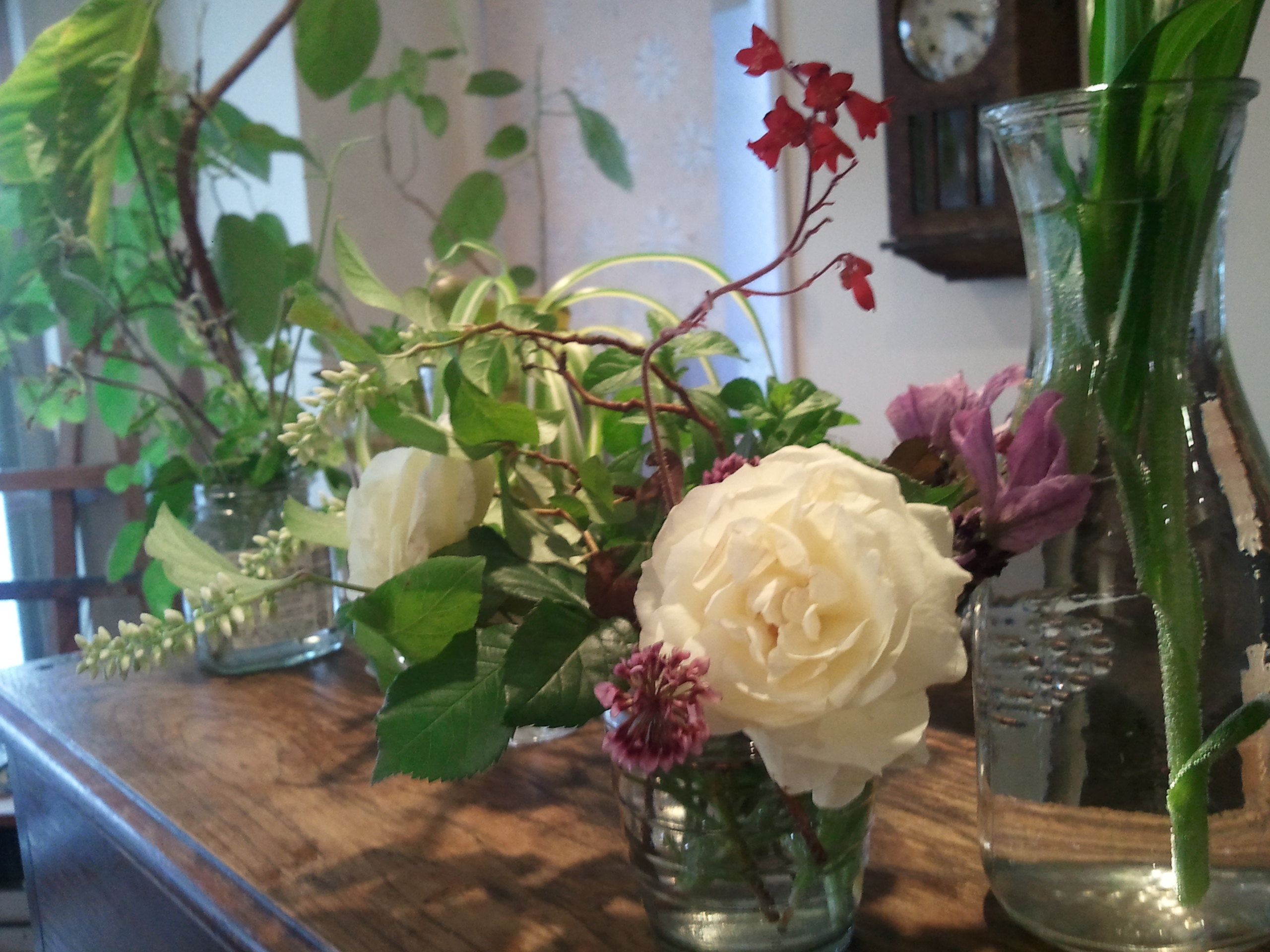 白い一重の花が印象的「なにわい薔薇」をお庭から御裾分け頂き、