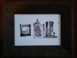 手のひらサイズの、今までで一番小さな絵を窓辺にならべました。