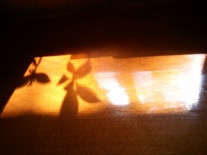 窓からテーブルに入る陽ざしが、かわいい影をつくっていました。