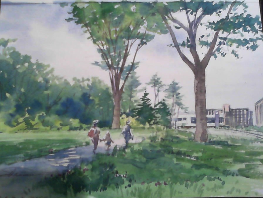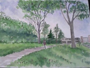 東北大学農学部のあたり 緑が豊かな水彩画に仕上がりました。