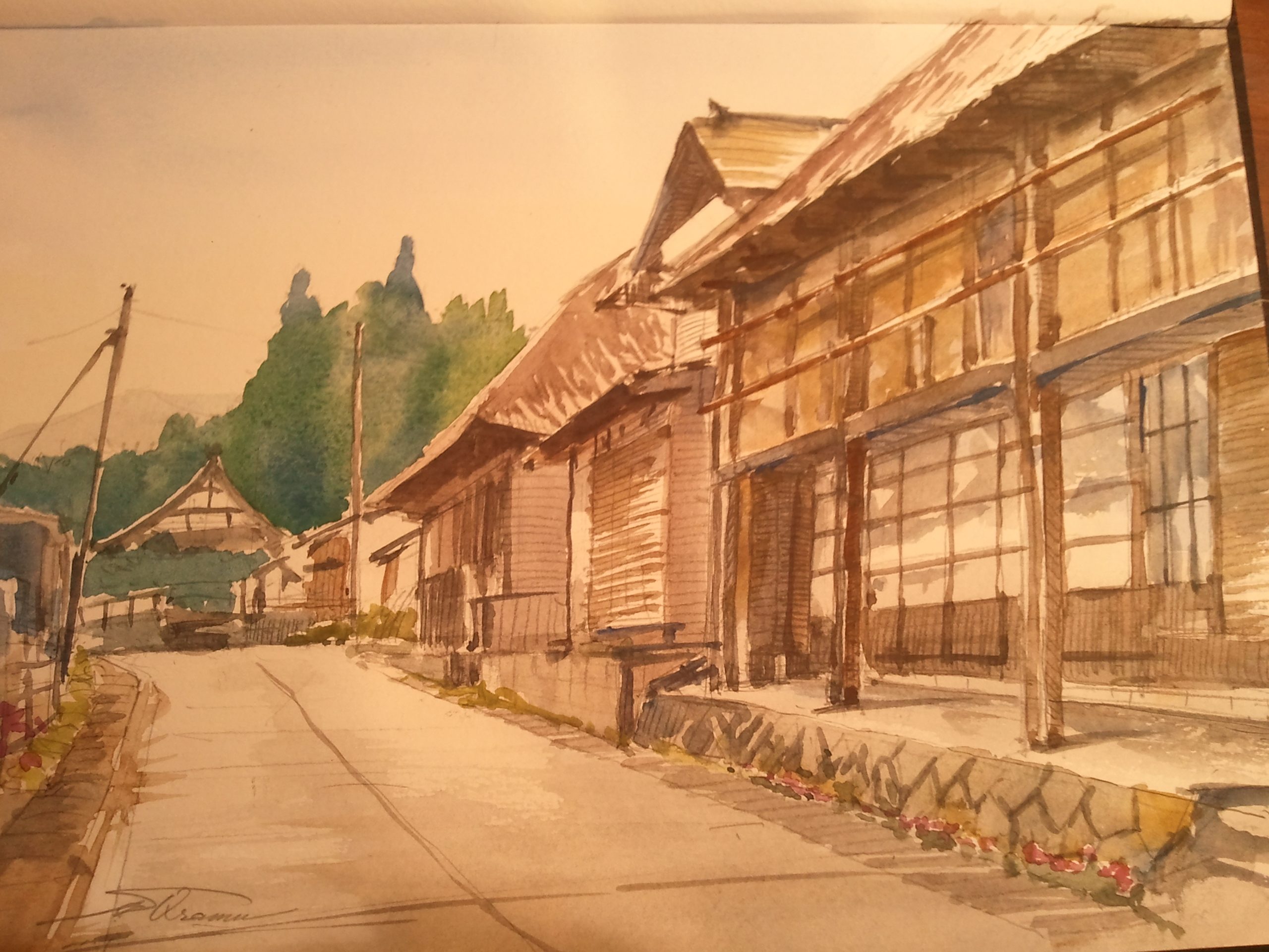 羽州街道(白石)の風景、建物の細かい描写がなかなか難しく、