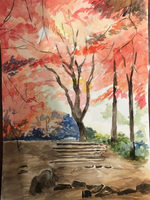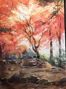 ひざしが綺麗な紅葉を描きました。
