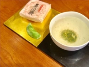 京都 北野天満宮の香梅煎と和菓子をいただきました。