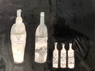 墨を磨って にじみや濃淡で描く墨画