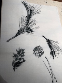 剪定で切り落とした枝をわけて頂き 立派な松をかきました。