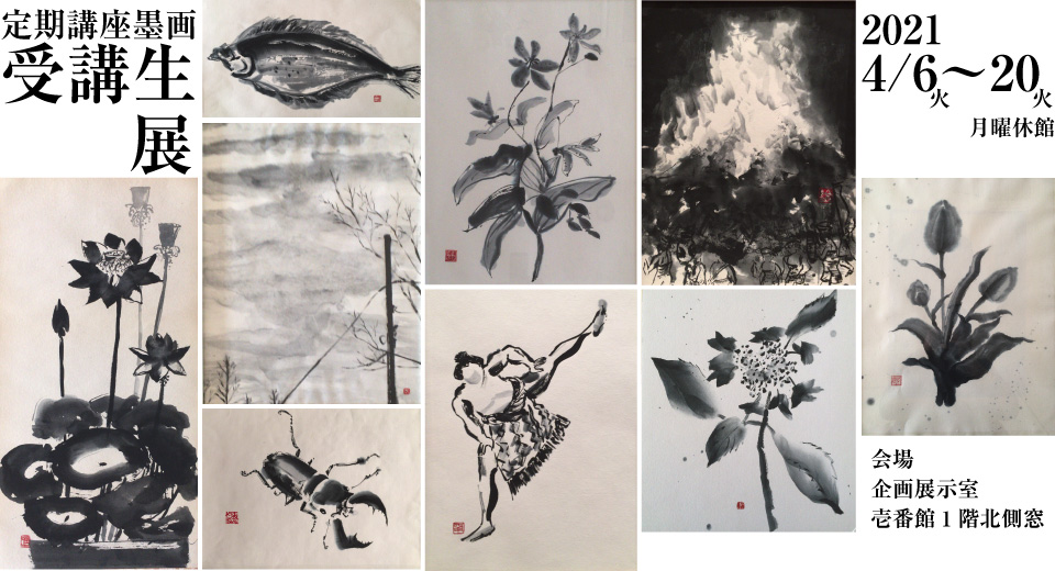 墨画家・一関恵美さんを講師とする墨画講座の受講生による 作品展。受講生それぞれの個性ある墨画表現と、墨色の美し さや深みをぜひお楽しみください。